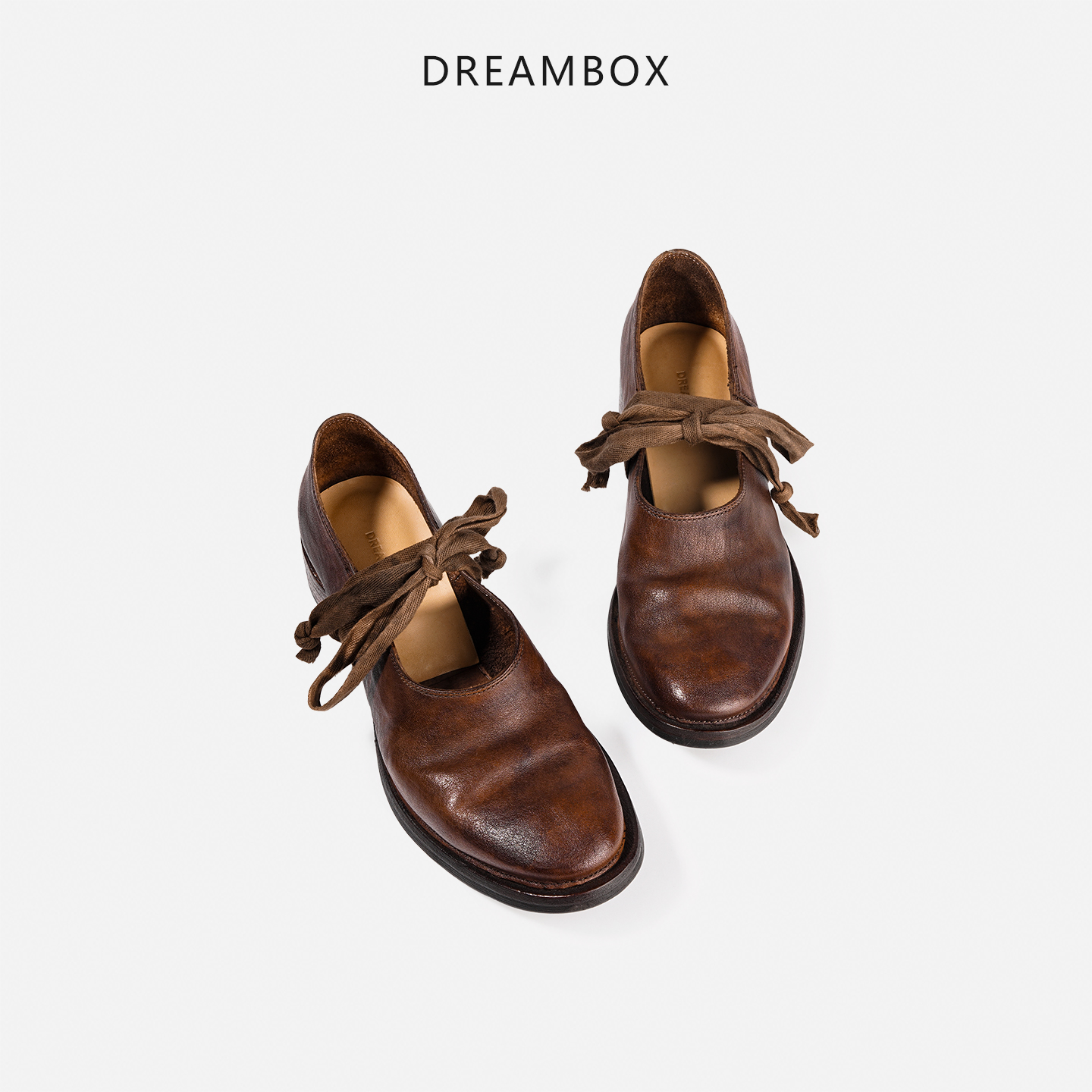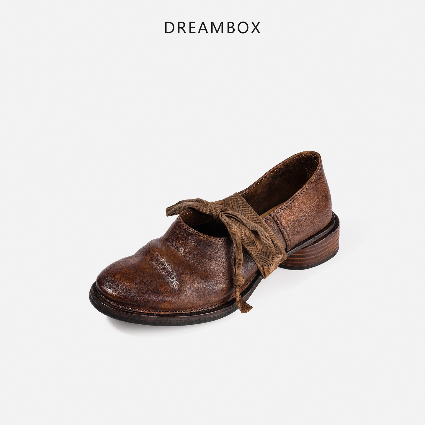 dreambox 钧博时尚轻奢袋鼠皮乐福鞋个性绑带小皮鞋法式复古女鞋