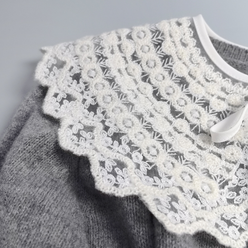 领先生秋冬毛线绣花小披肩假领子女韩版百搭毛衣装饰领减龄娃娃领