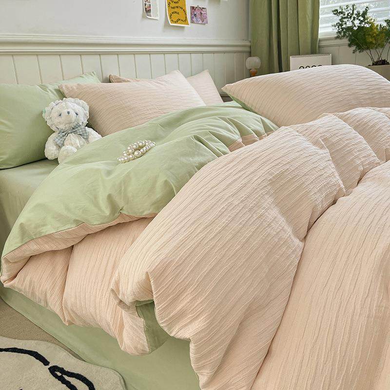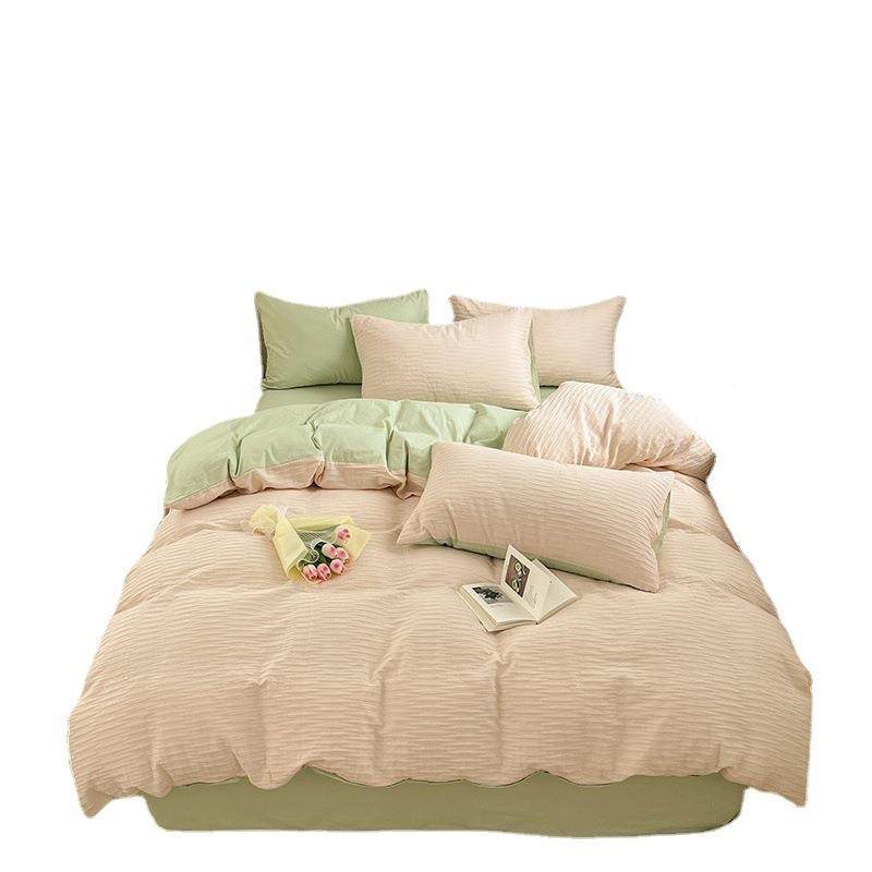 享家日式泡简约全棉泡FJY泡泡纱床纯色双拼四件套质纯棉被套床单