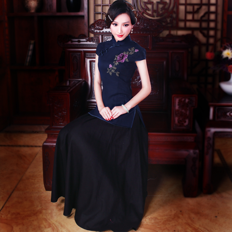 如意风黑色a字半身裙春秋搭配唐装旗袍小众设计女装复古棉麻裙子