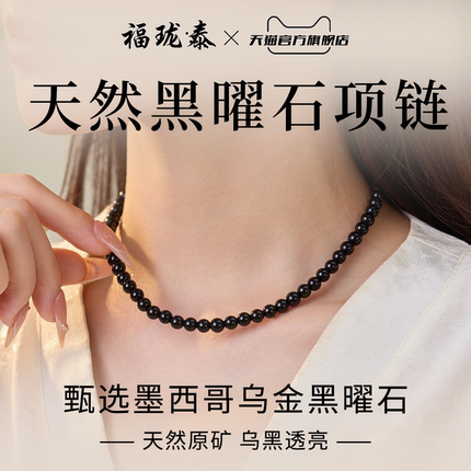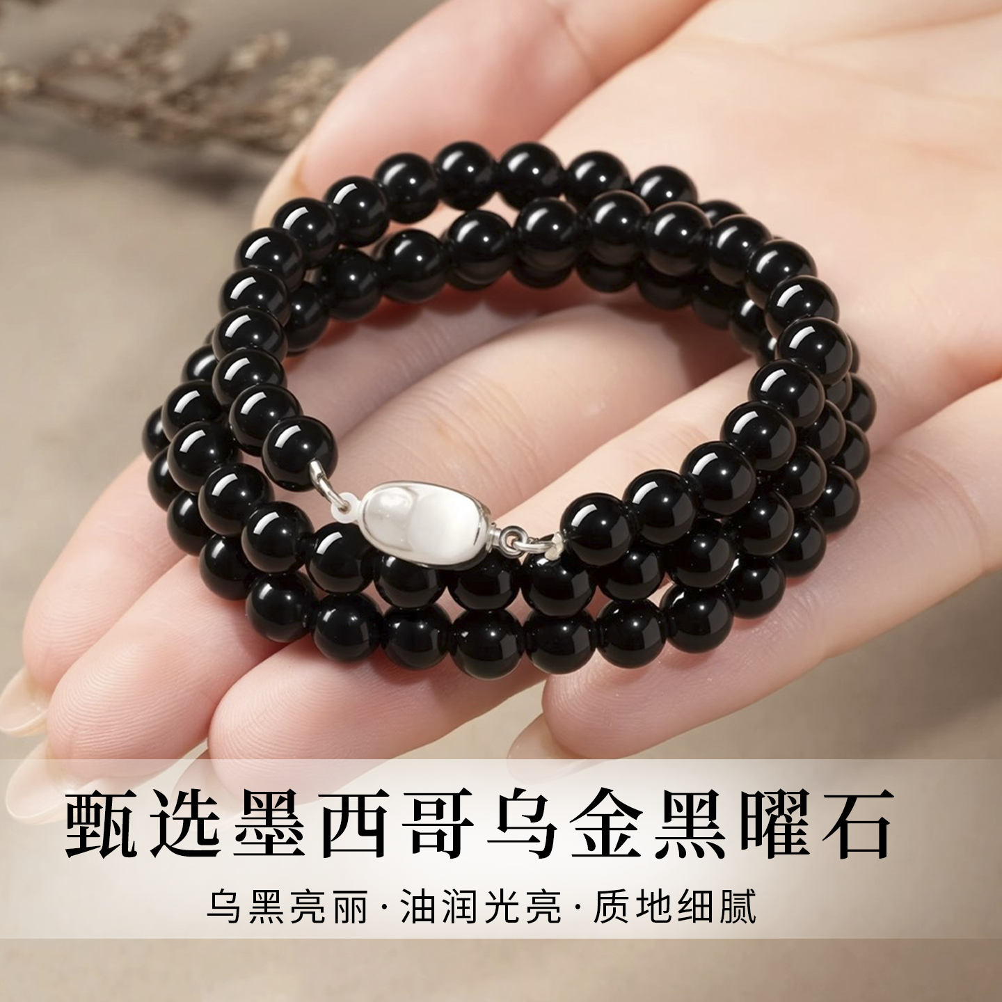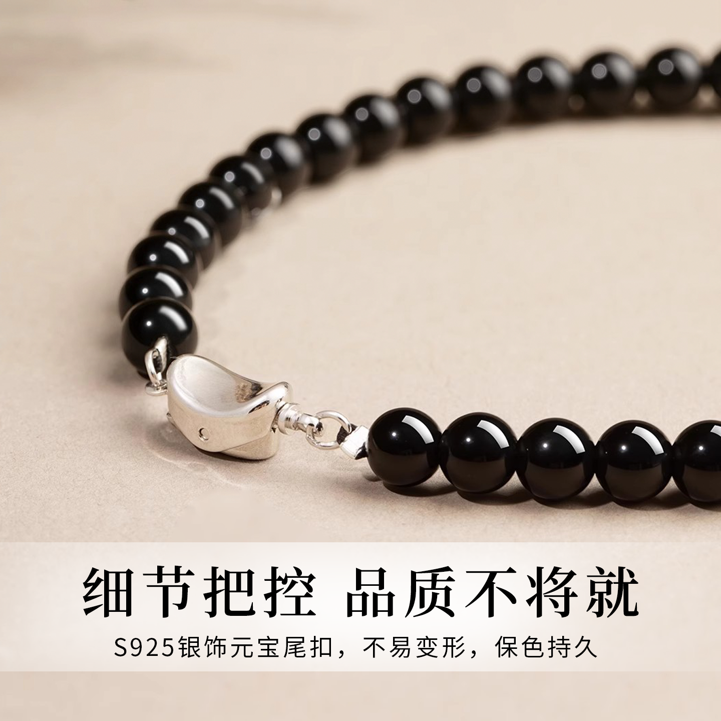 天然黑曜石吊坠女纯银小众设计颈链黑玛瑙锁骨链情侣项链送礼饰品