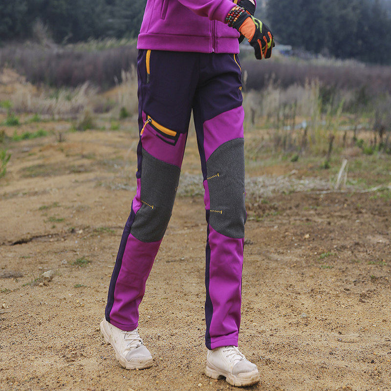 凯乐石薄荷户外冲锋裤女秋冬防风防水加绒加厚宽松登山滑雪裤撞色