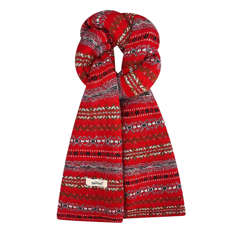 韩系复古氛围感撞色提花条纹针织围巾女秋冬季高级感软糯百搭围脖