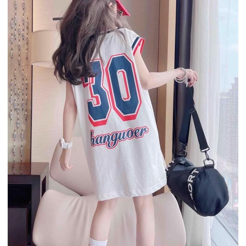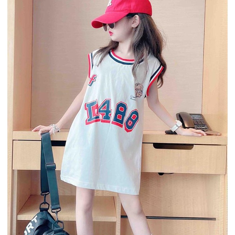 女童连衣裙夏季冰丝2025新款中大童网红球服薄款背心裙女孩t恤裙