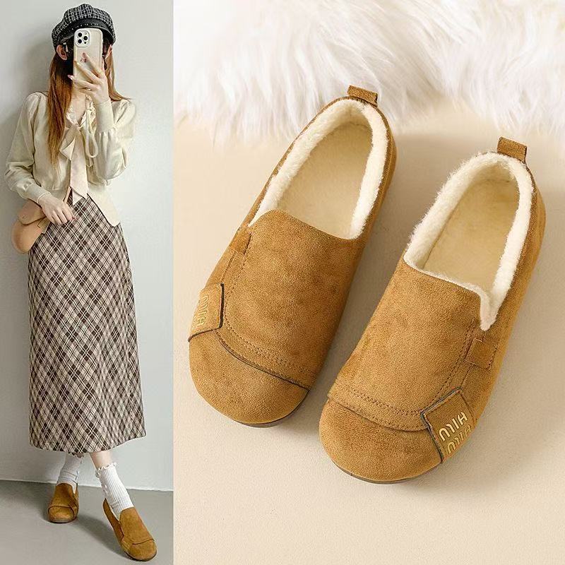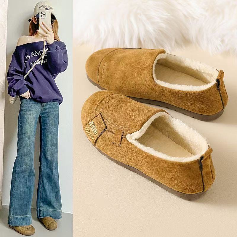 新款冬季棉鞋锁温女士外穿一脚蹬毛毛单鞋加绒保暖平底丑萌豆豆鞋