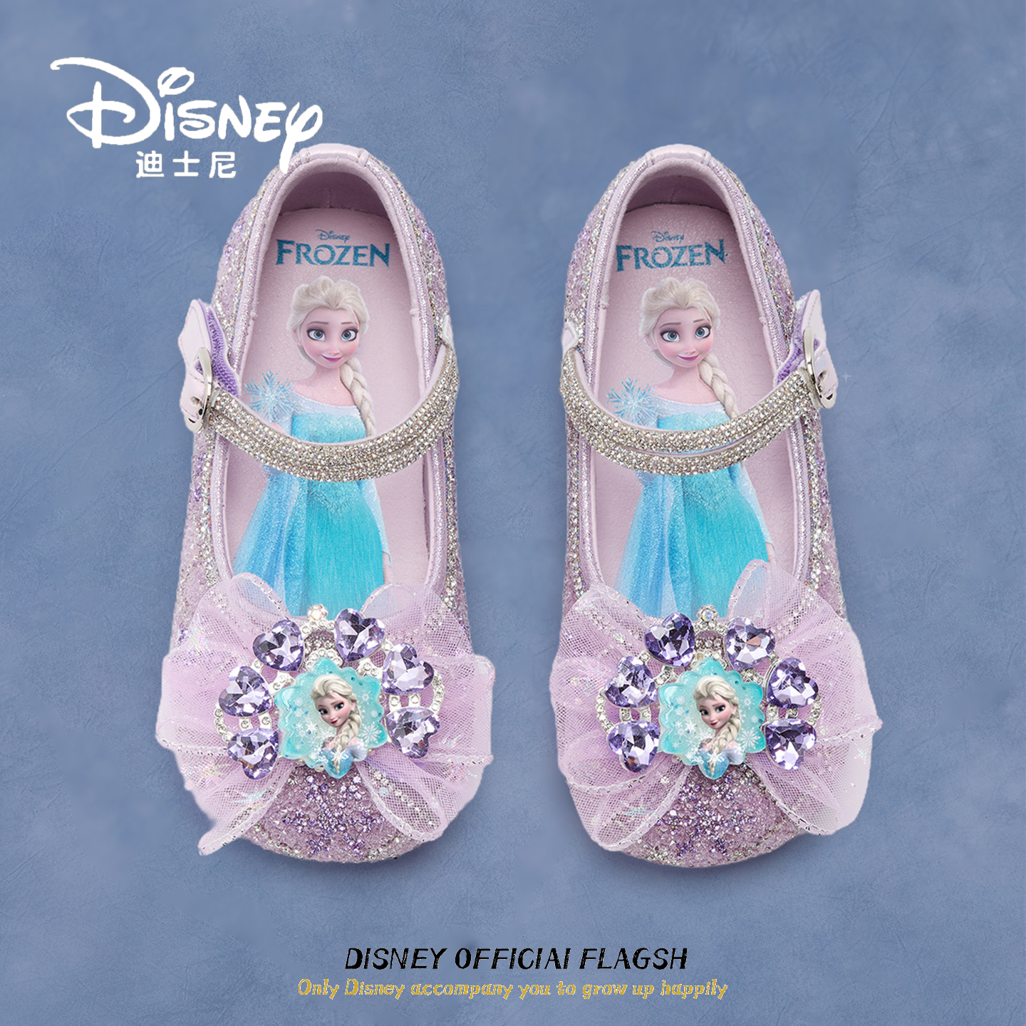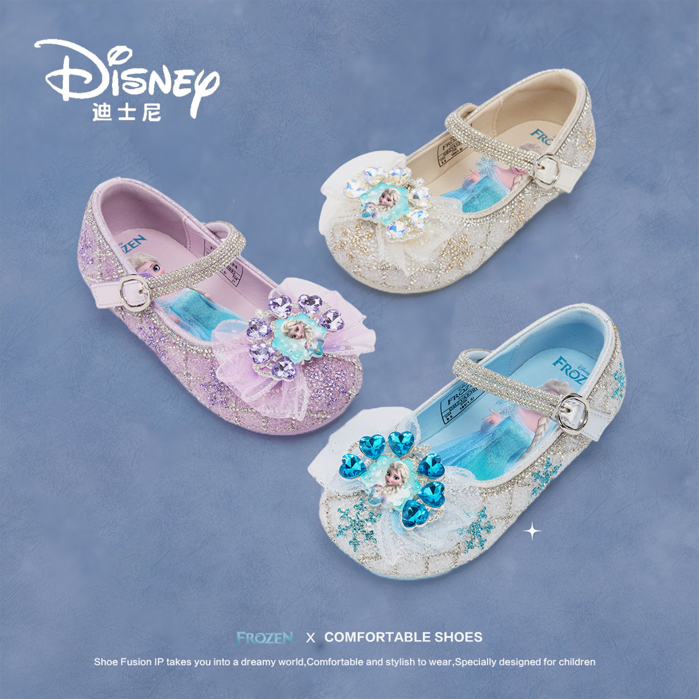 迪士尼艾莎公主女童水钻鞋儿童皮鞋小女孩水晶鞋演出舞蹈时尚单鞋