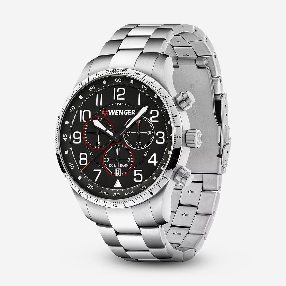 自营 WENGER 瑞士军表男式 01.1543.120 Attitude 黑色表盘计时码