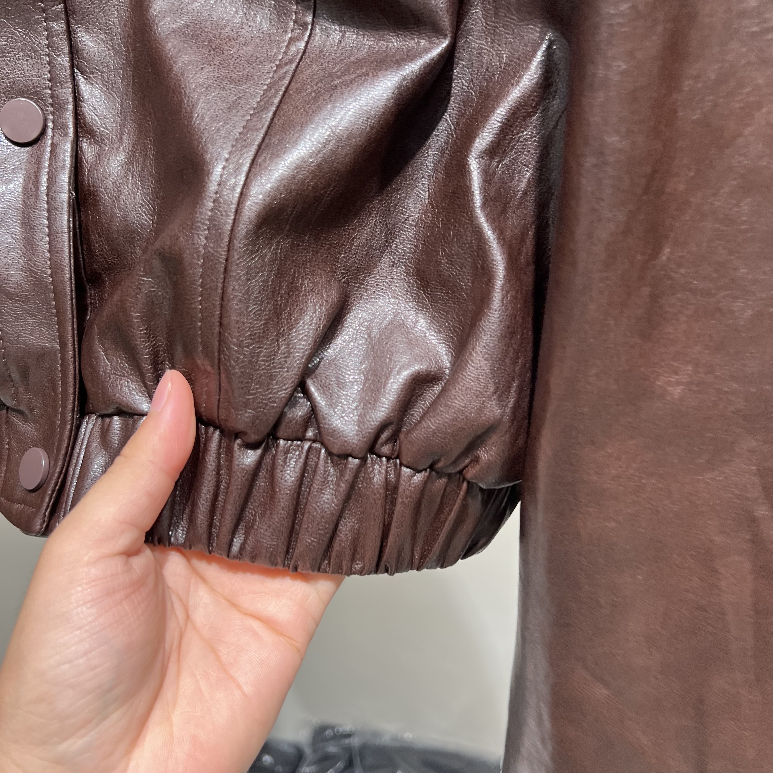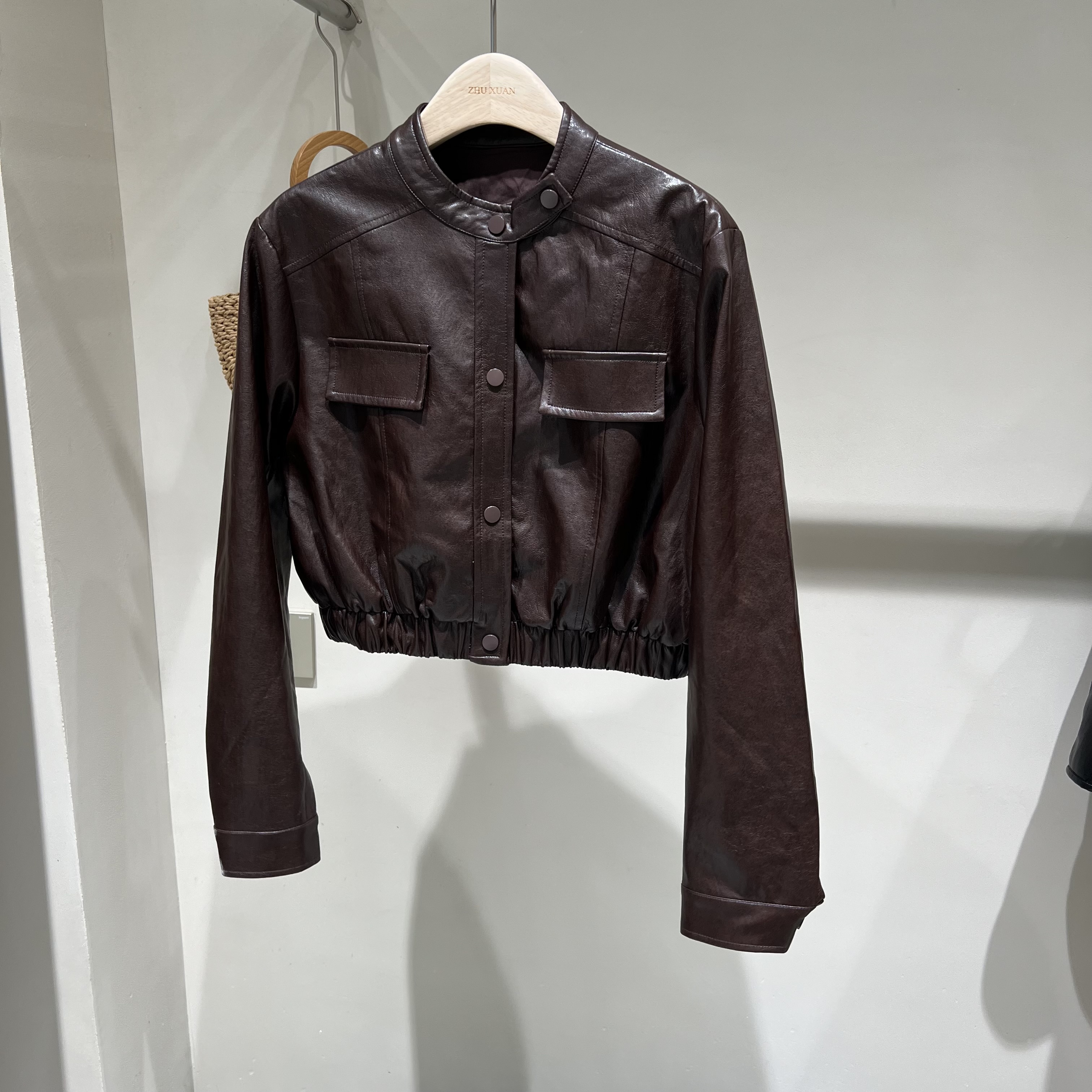 2025秋季新款复古港风立领pu皮衣外套女短款小个子机车夹服克上衣