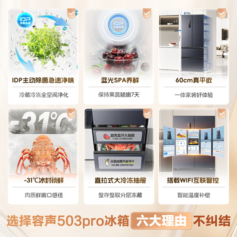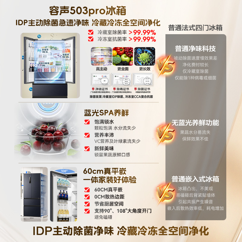 容声503pro IDP净味法式四门超薄嵌入式家用电冰箱以旧换新补贴