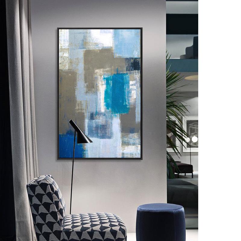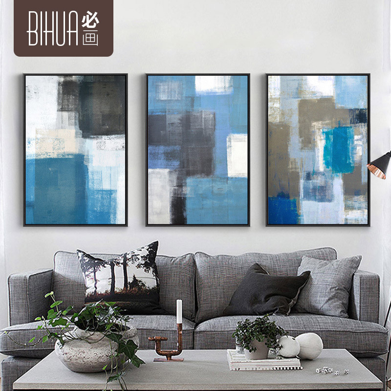 定做现壁代简抽客厅装饰画玄餐厅挂画沙发约景墙背油画三关联画蓝