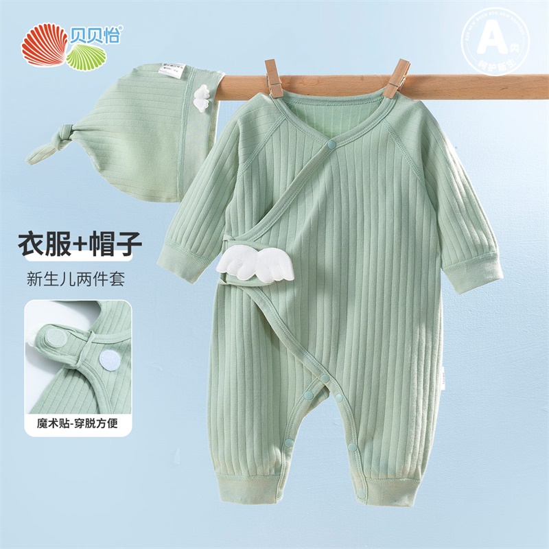 贝贝怡新生儿新品魔术贴连体哈衣