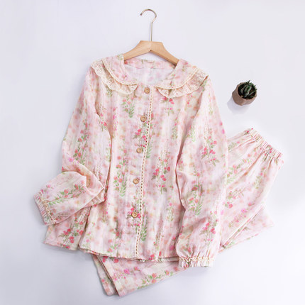 【夏日玫瑰】睡衣女纯棉双层春夏季透气印花柔软家居服套装可外穿