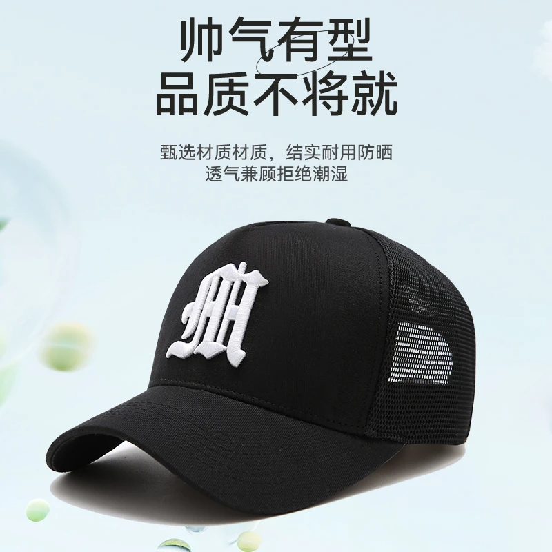 刺绣硬顶铆钉鸭舌帽夏季大头围