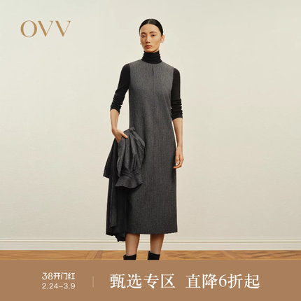 OVV秋冬热卖女装圆领无袖连衣裙简约休闲长款背心裙