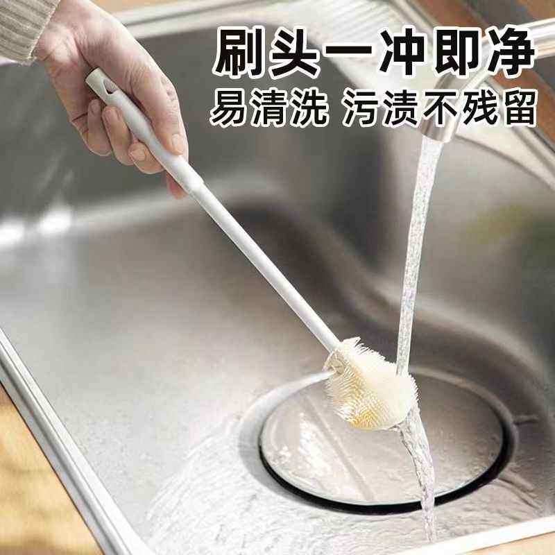 日本家用长柄奶瓶清洁刷子硅胶杯刷专用水杯清洗神器可折叠无死角