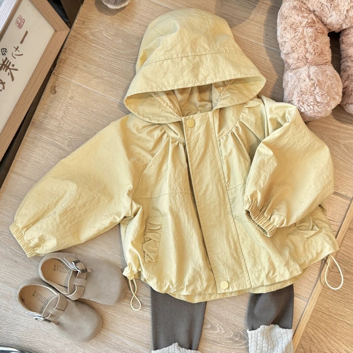 女童两件套2025春秋款女童宝宝休闲百搭可爱连帽冲锋衣打底裤套装