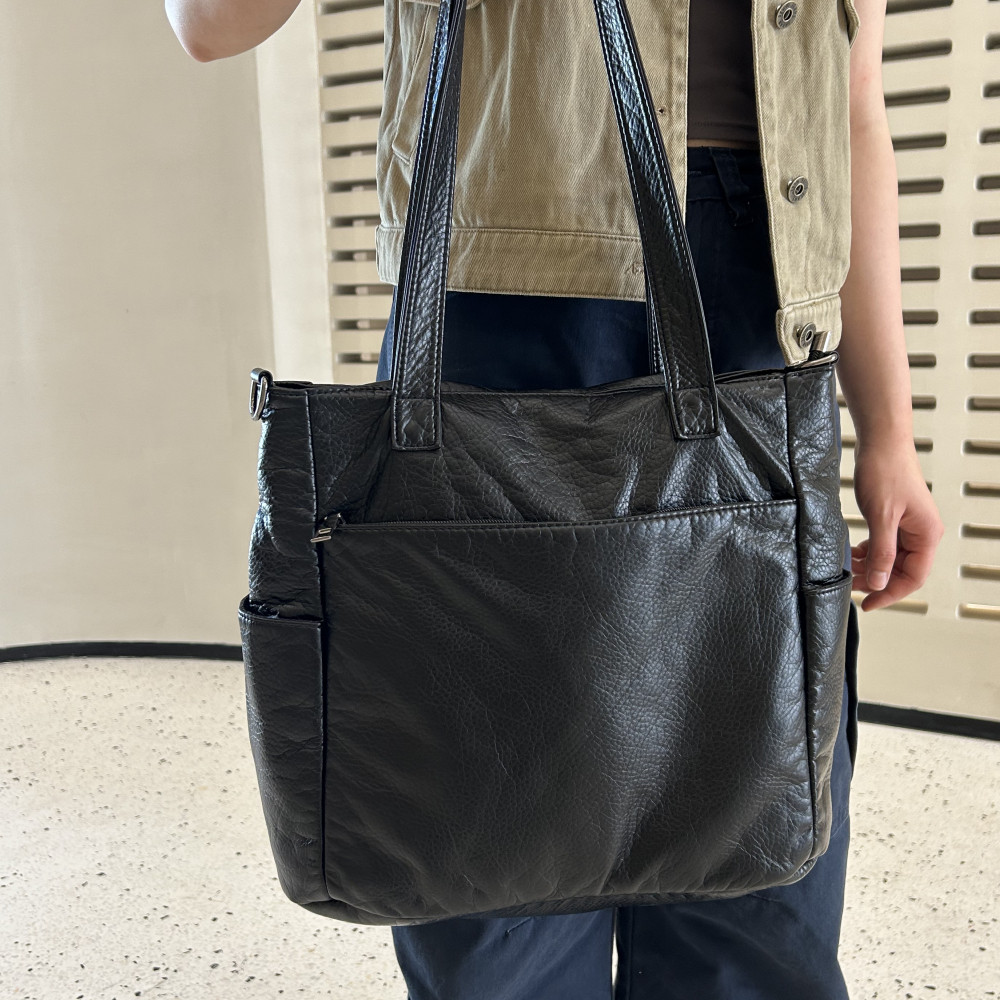 真皮软皮大容量单肩包2025新款通勤托特女包简约百搭腋下手提大包