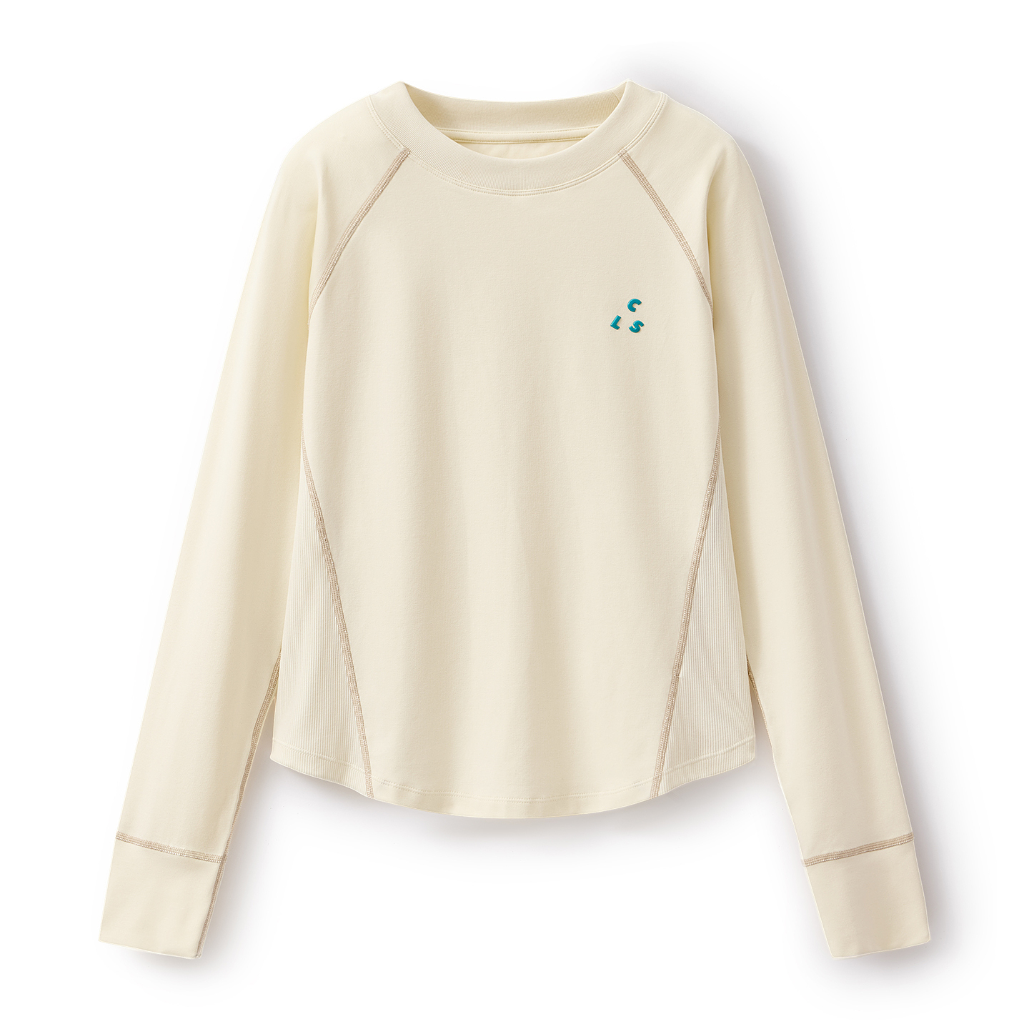 云上生活【慢享T】撞色压线插肩袖显瘦长袖女T恤2025秋季短款上衣