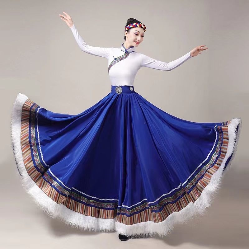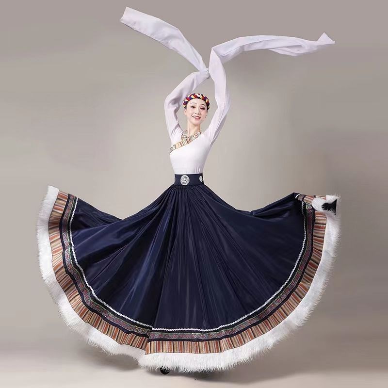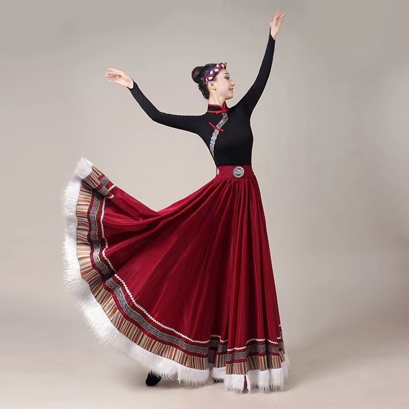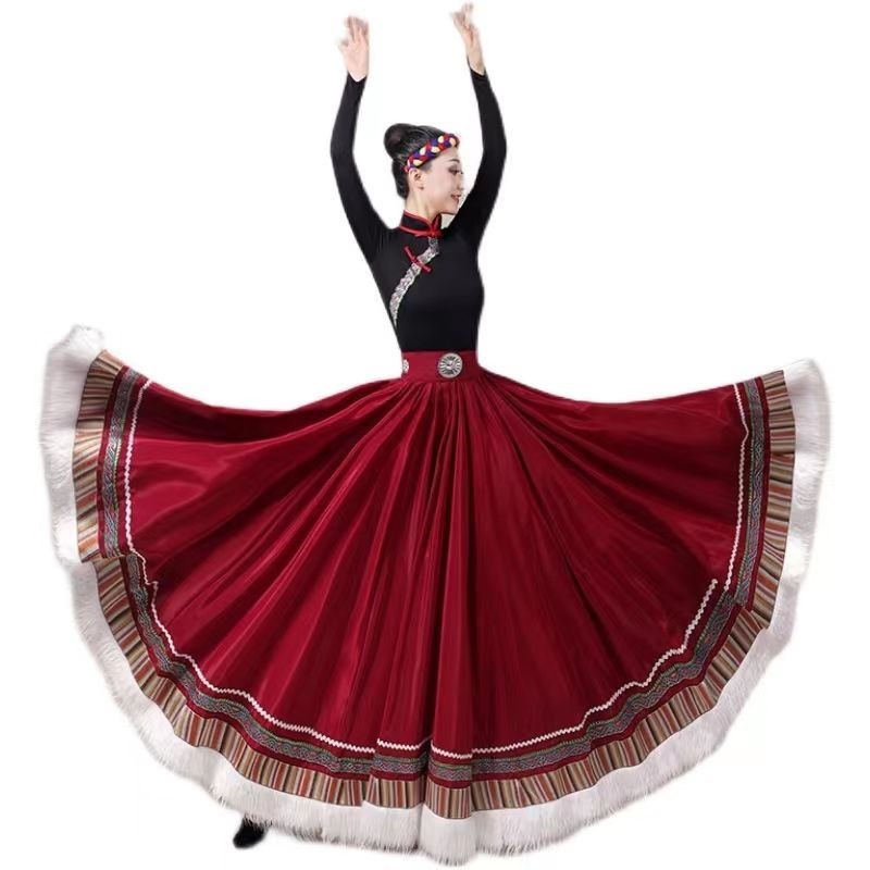 现货速发新款藏族舞蹈演出服装水袖上衣学生藏族半身裙大摆族艺考