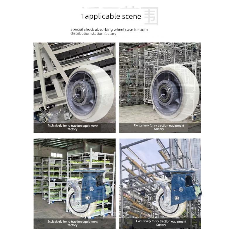 白色车轮弹簧减震脚轮铁芯Pu弧聚氨酯4568英寸台式拖拉机机械设备