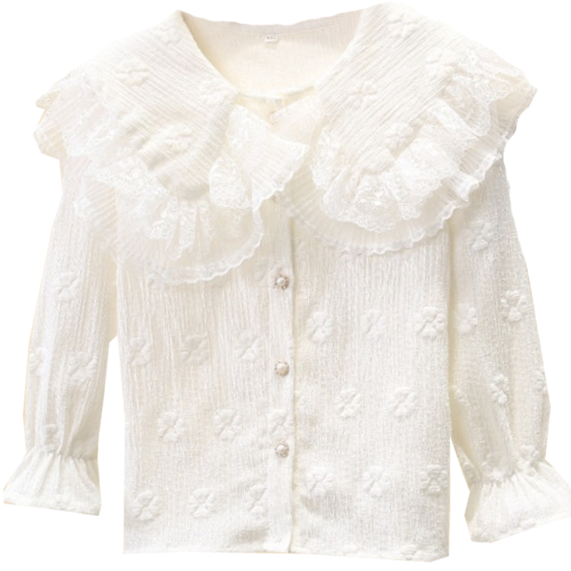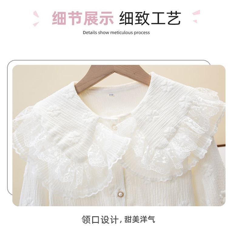 女童春秋薄款衬衫2025新款女孩娃娃领白色雪纺衫儿童衬衣外套上衣