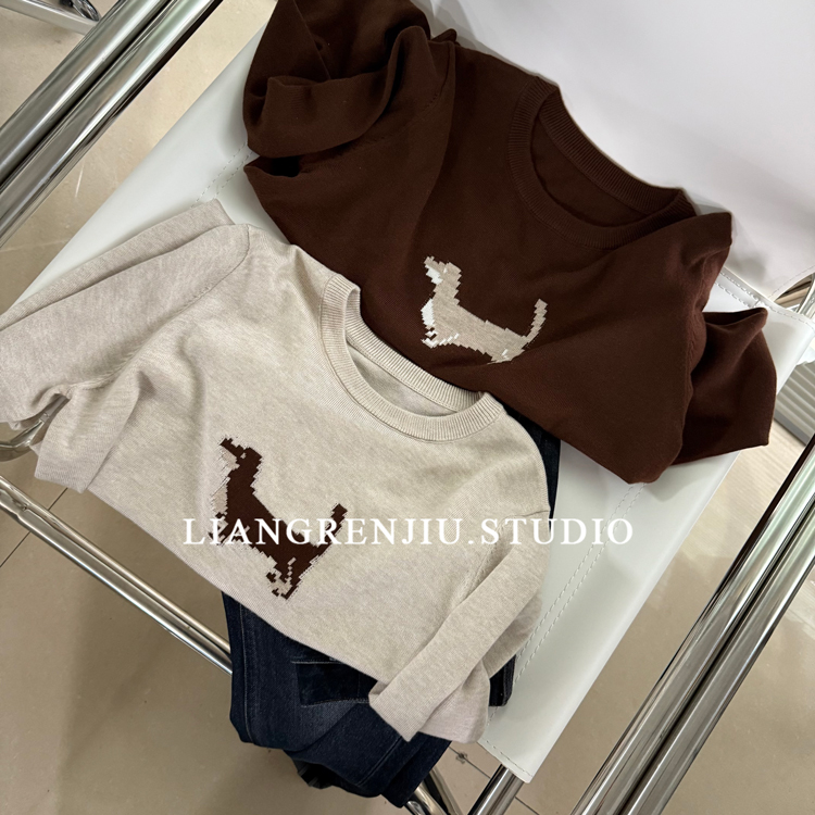 普普风。4.9绵羊毛小狗提花。抗起球线衫长袖秋冬针织衫X
