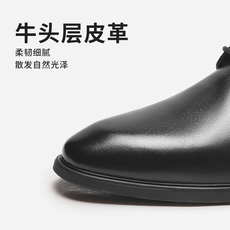 热风秋季新款男士时尚英伦风商务正装皮鞋舒适透气德比鞋潮