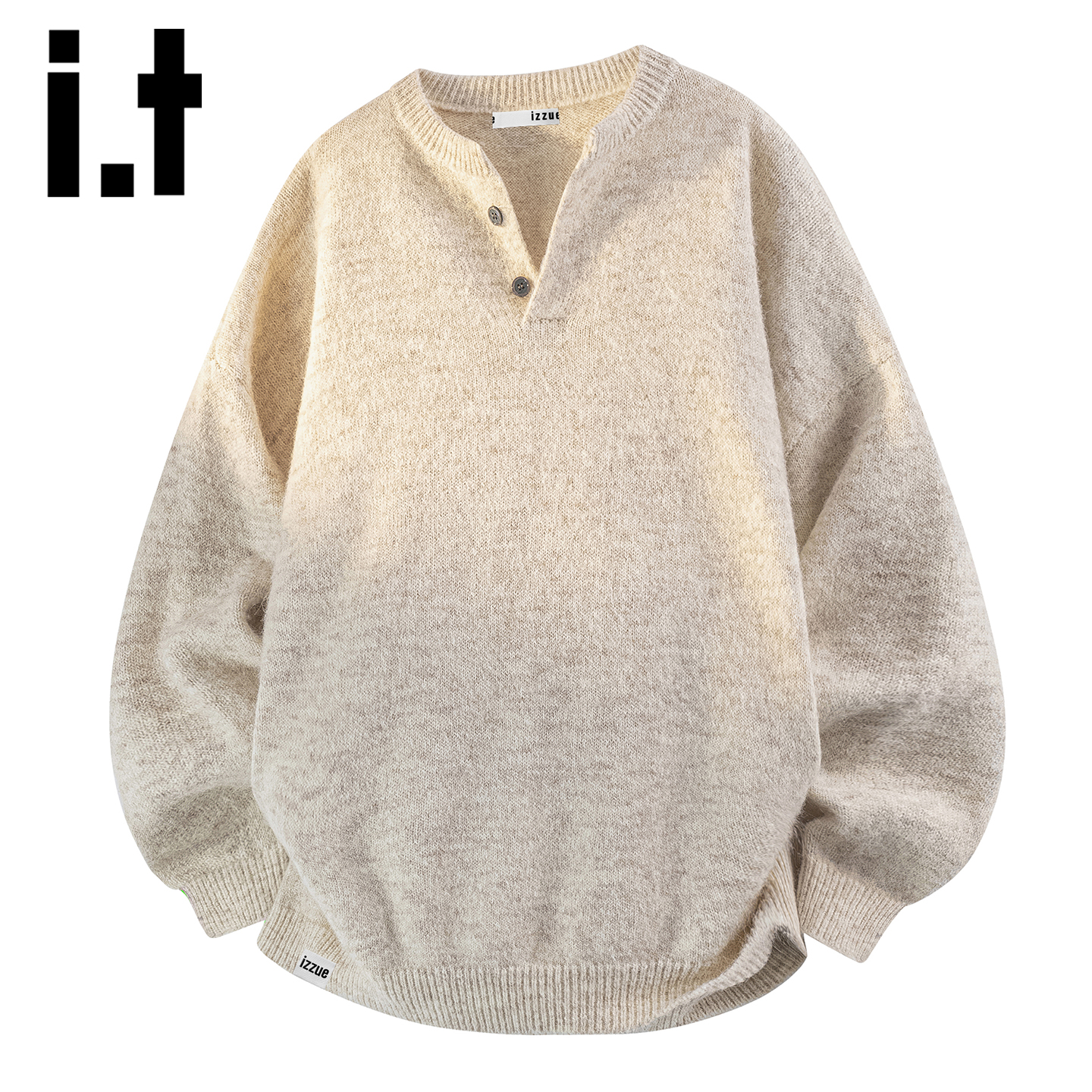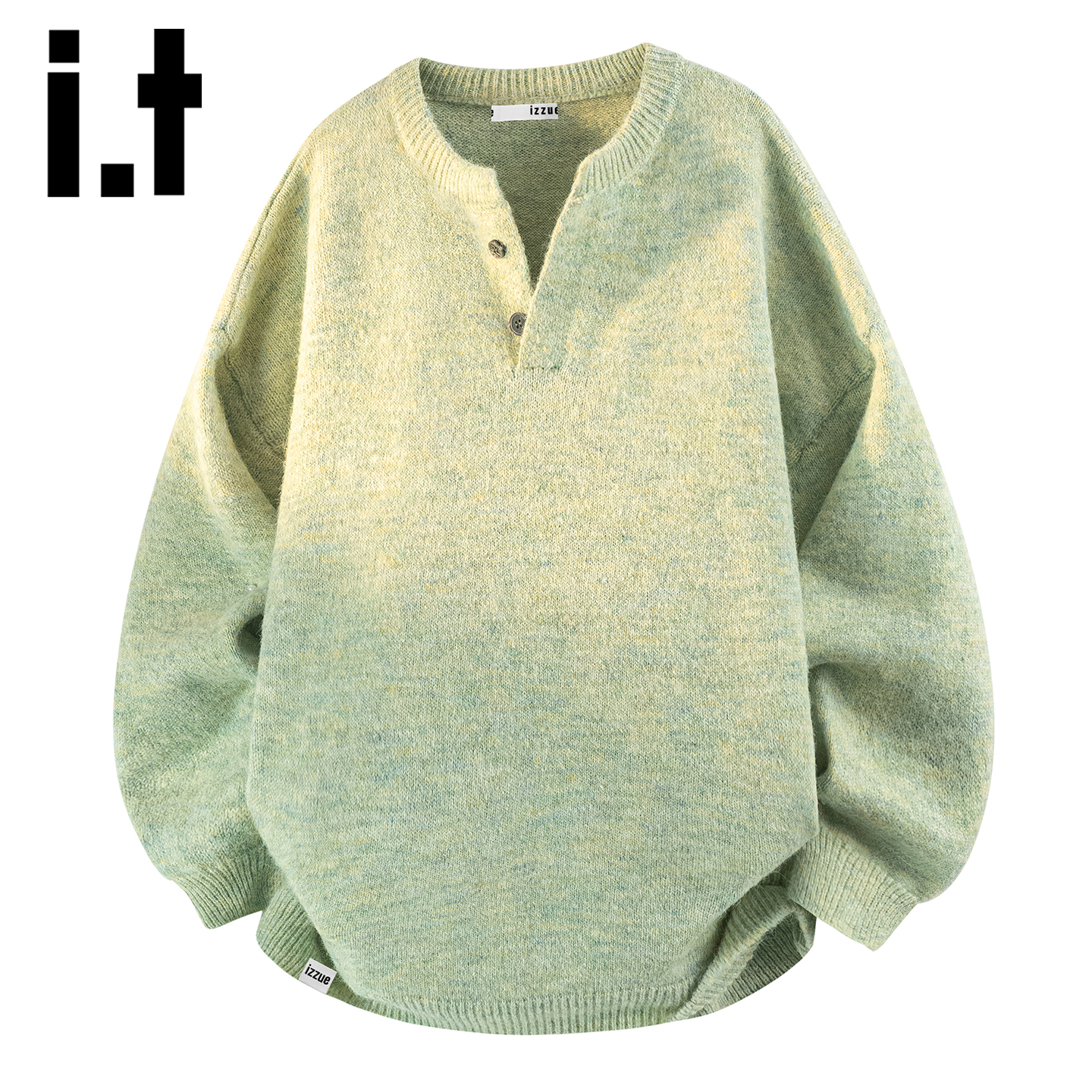 it izzue美式纯色亨利领毛衣男士秋季潮牌高级感针织衫休闲外套Y