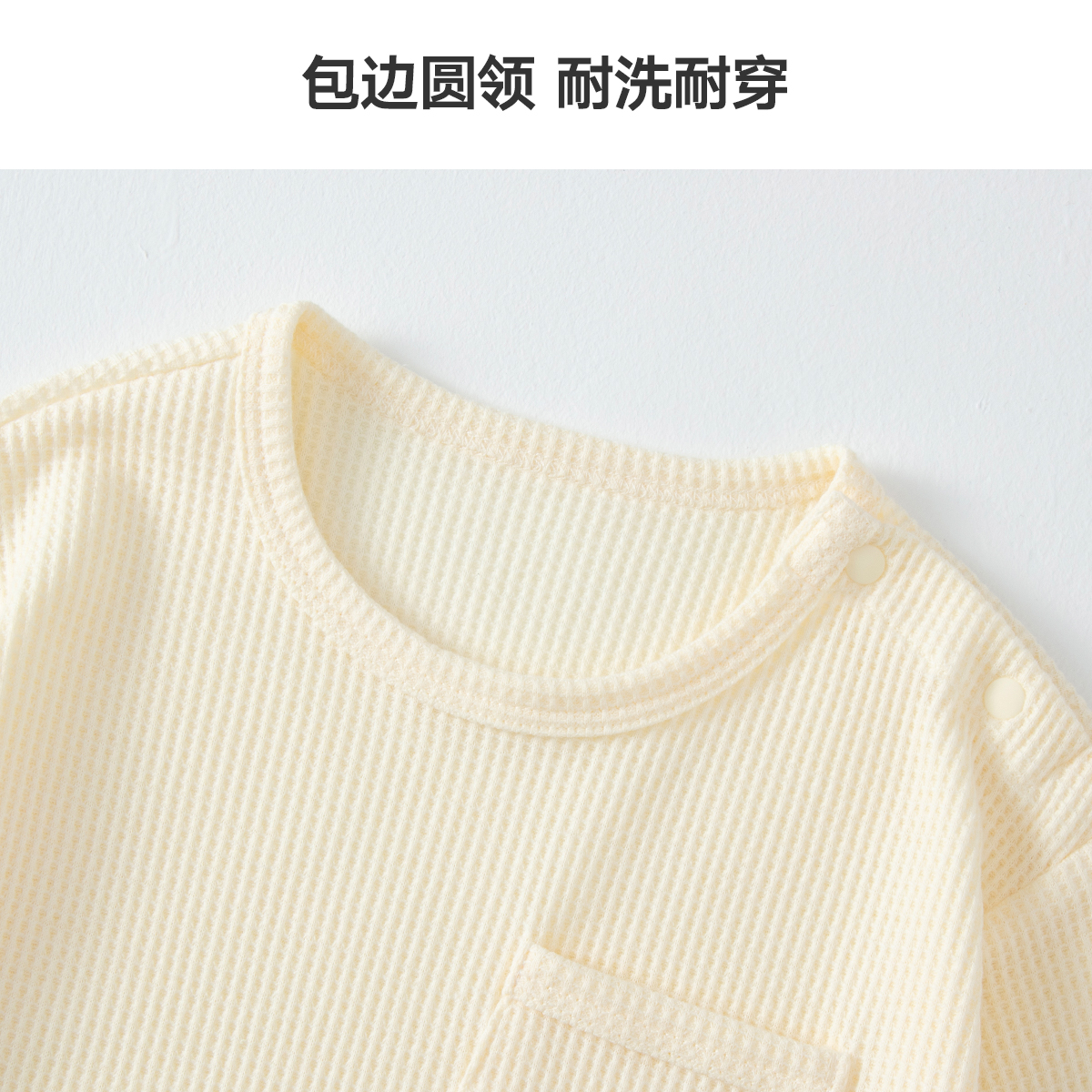 英格贝贝春秋装男女童圆领T恤儿童华夫格卫衣薄款宝宝打底衫上衣
