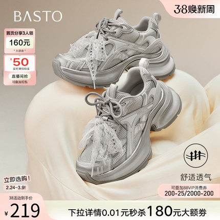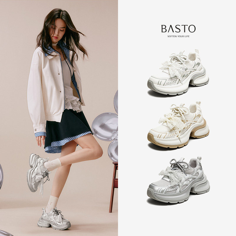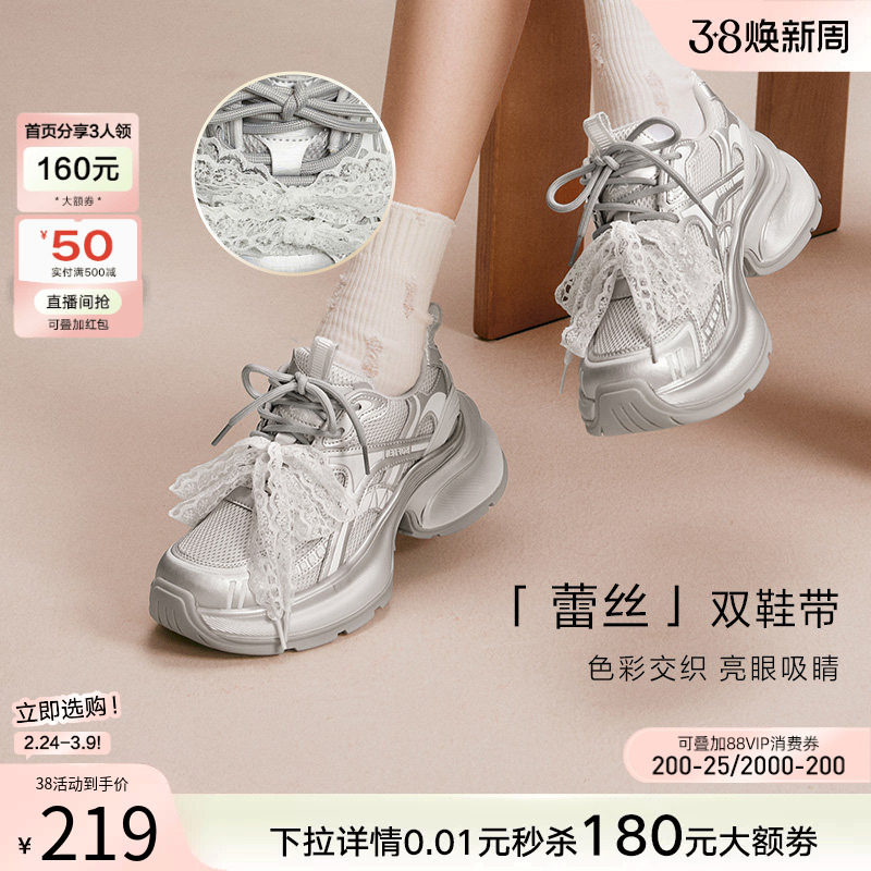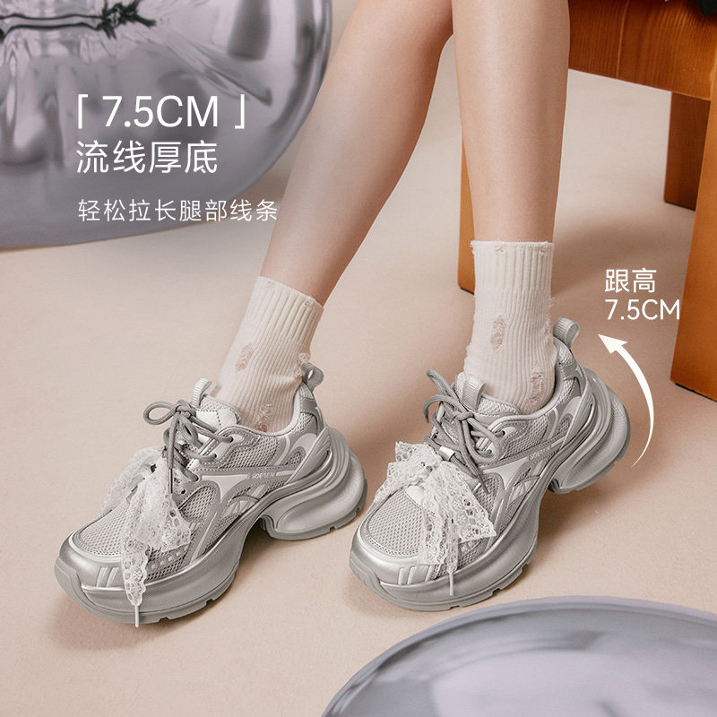 百思图秋季新款商场同款老爹鞋厚底增高女运动休闲鞋V0982CM5