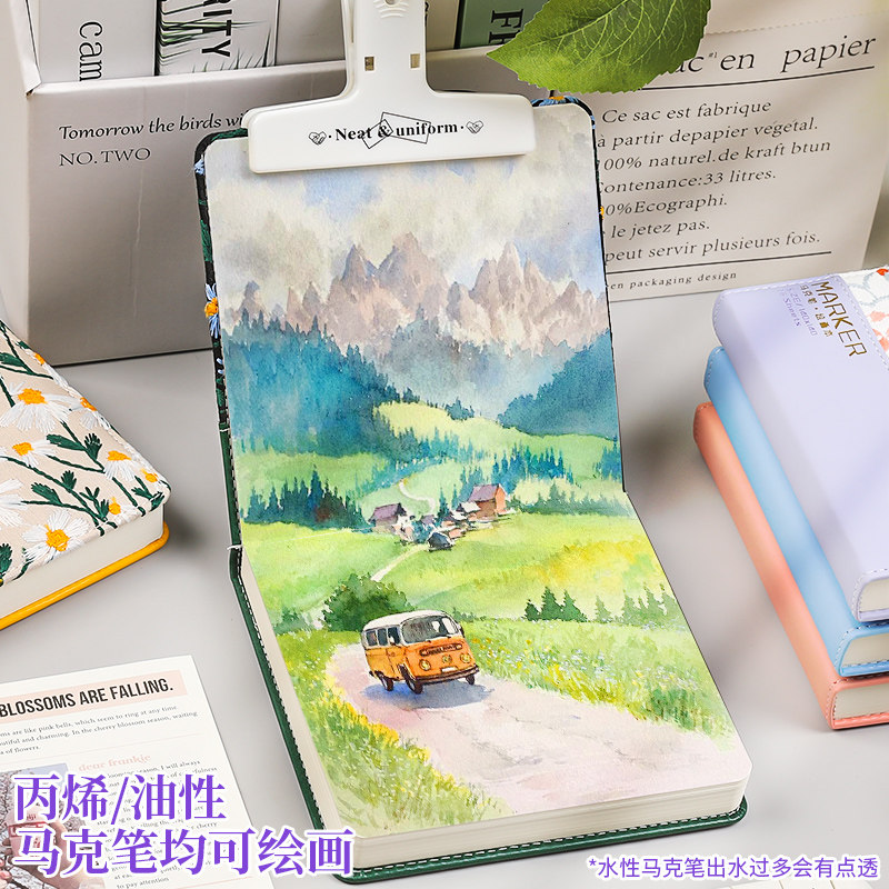 丙烯马克笔绘画本翻翻乐画本专用画纸手账本画画本水彩素描本空白便携式随身摸鱼本高颜值小方本美术生手绘本