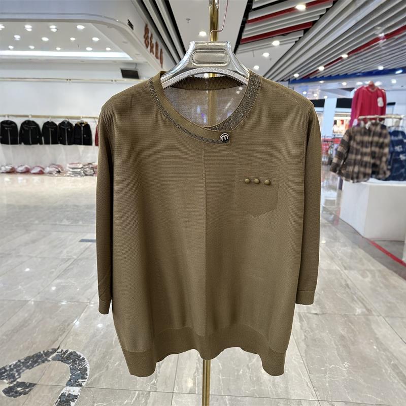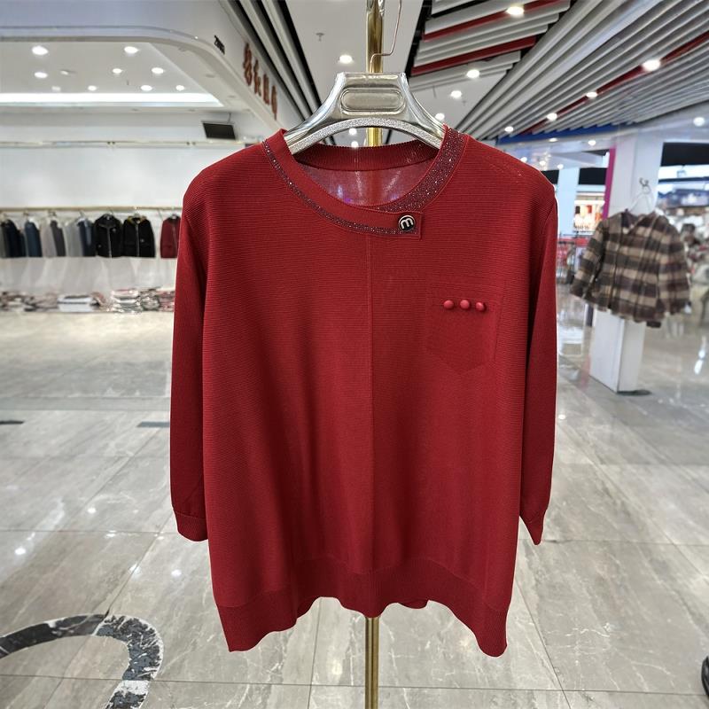 年轻妈妈装七分袖冰丝针织衫T恤春装新款洋气减龄小衫中老年上衣