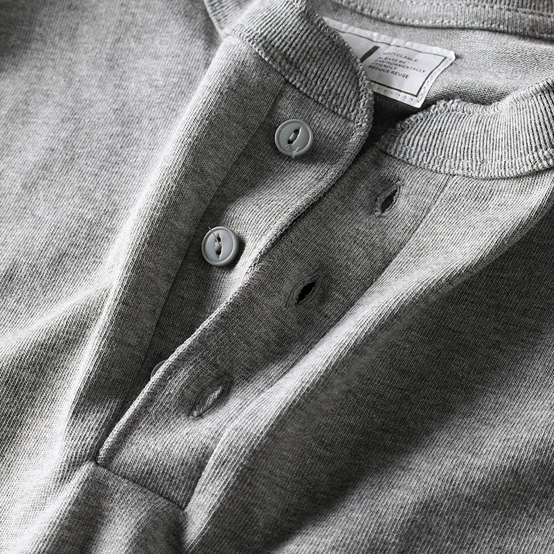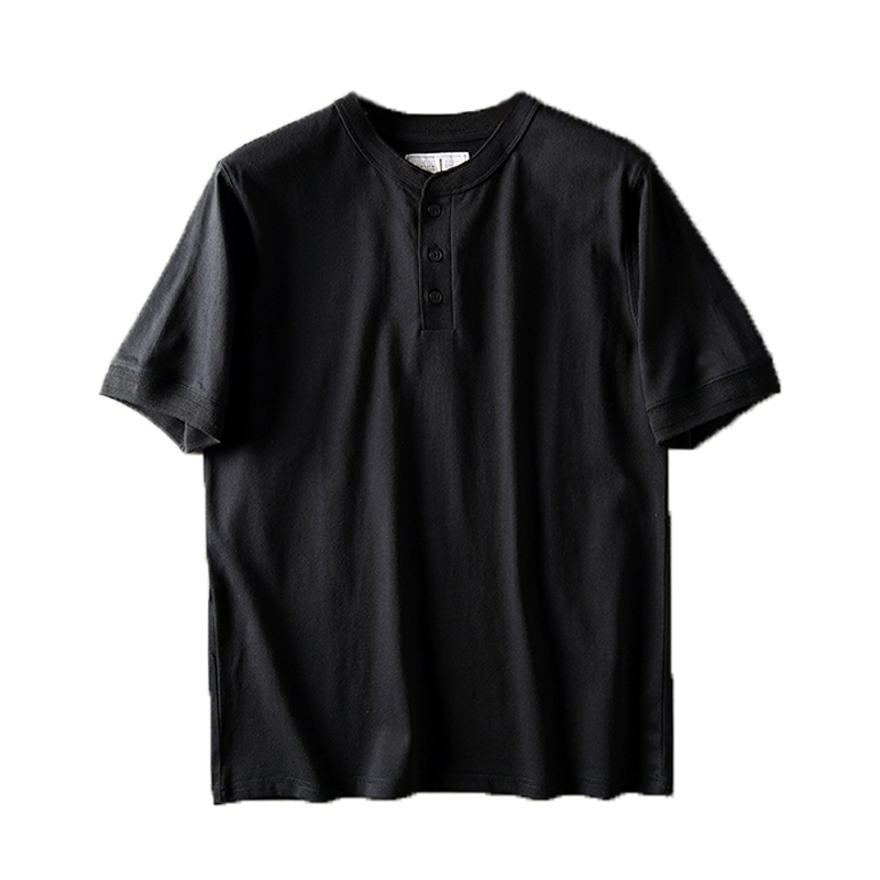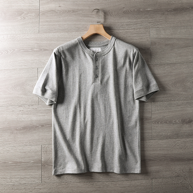 成衣水洗美式全棉亨利领短袖T恤