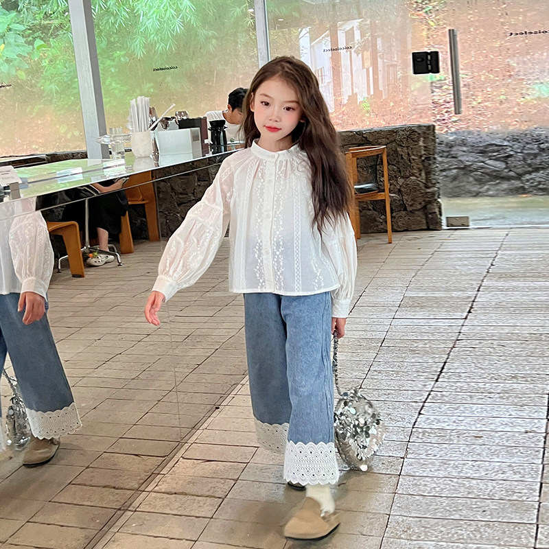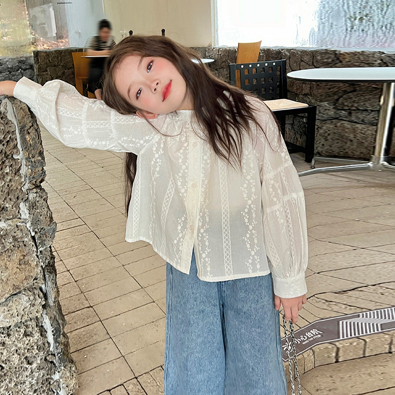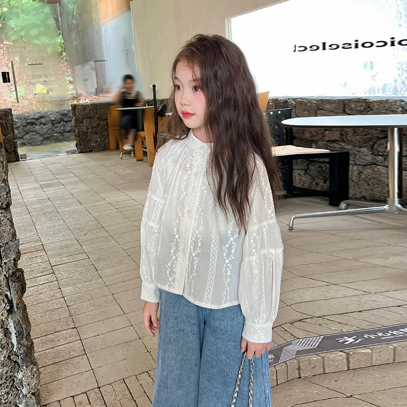 栀了成长记童装女童白色泡泡袖衬衫夏新款儿童宽松防晒衫上衣洋气