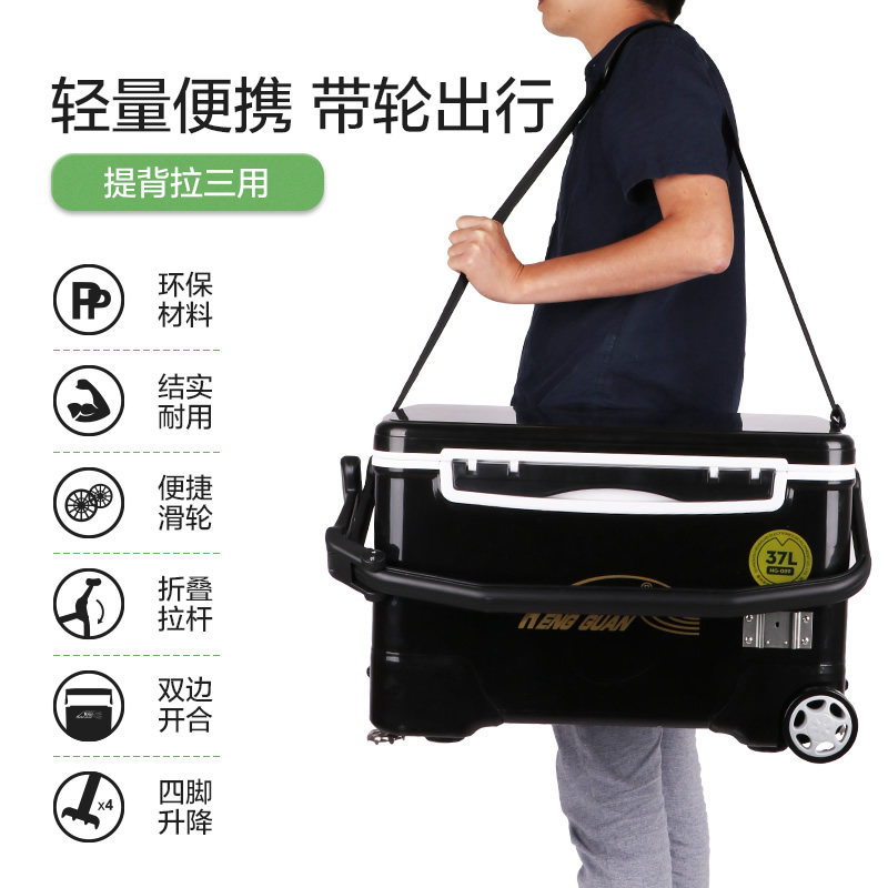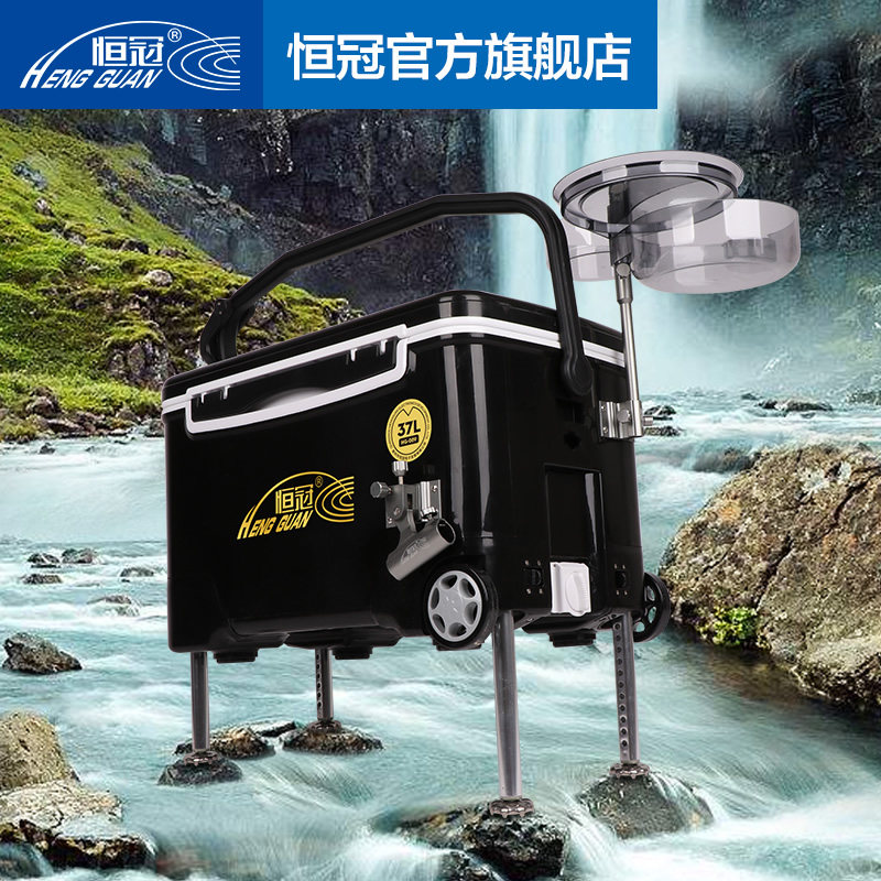 恒冠37L多功能钓鱼箱台钓箱全套特价四脚箱子渔具超轻加厚带轮089