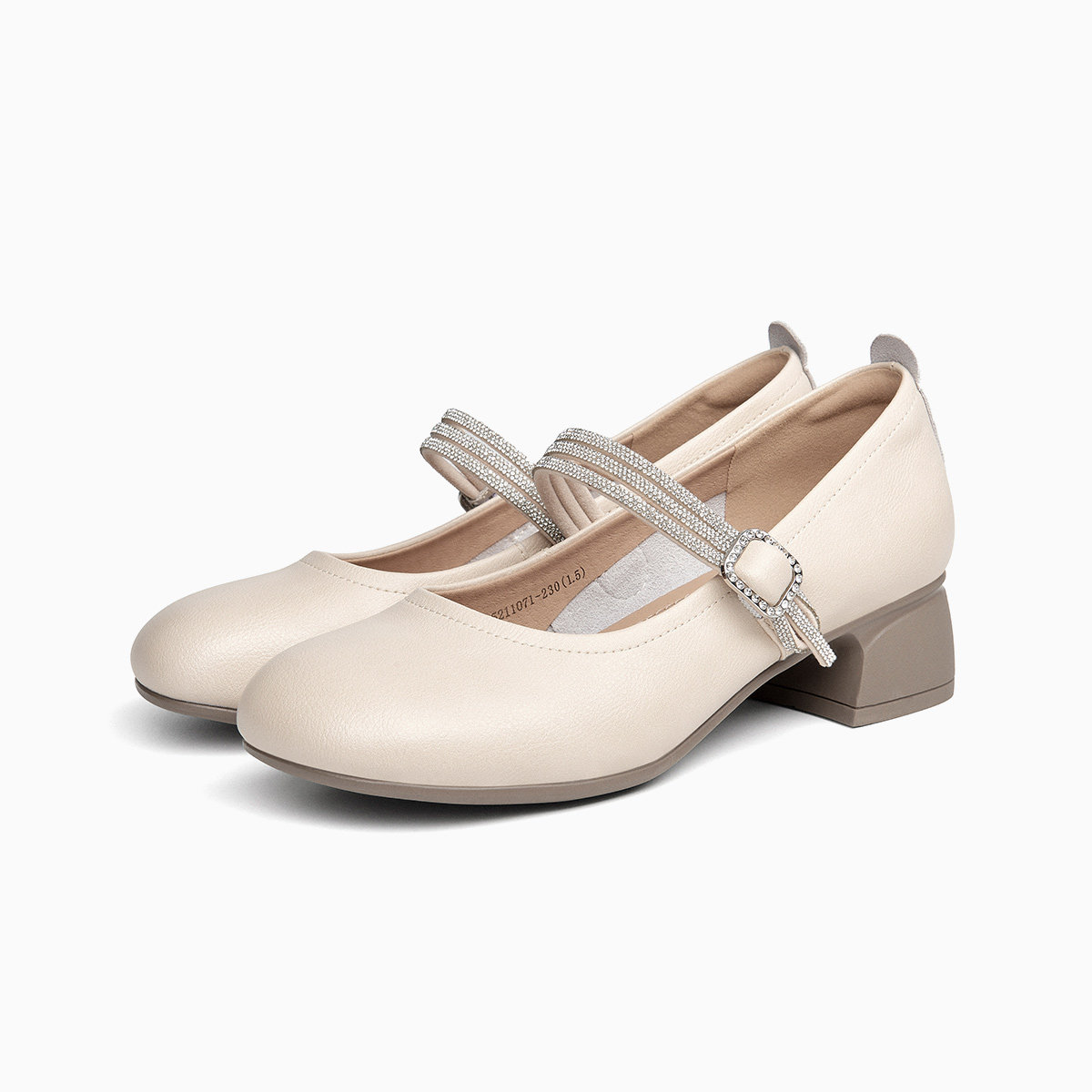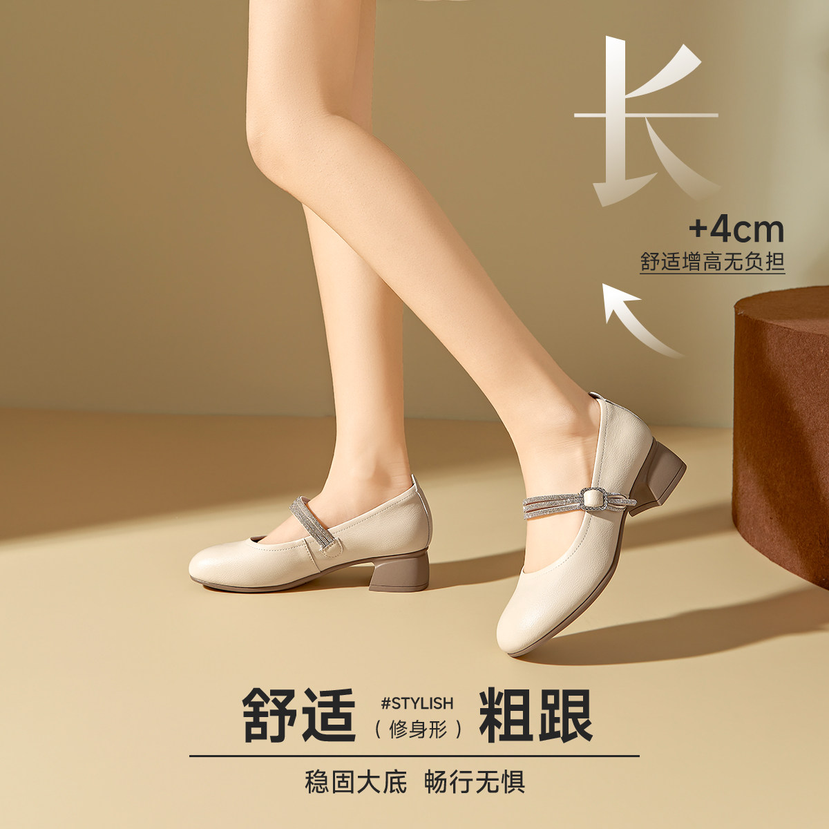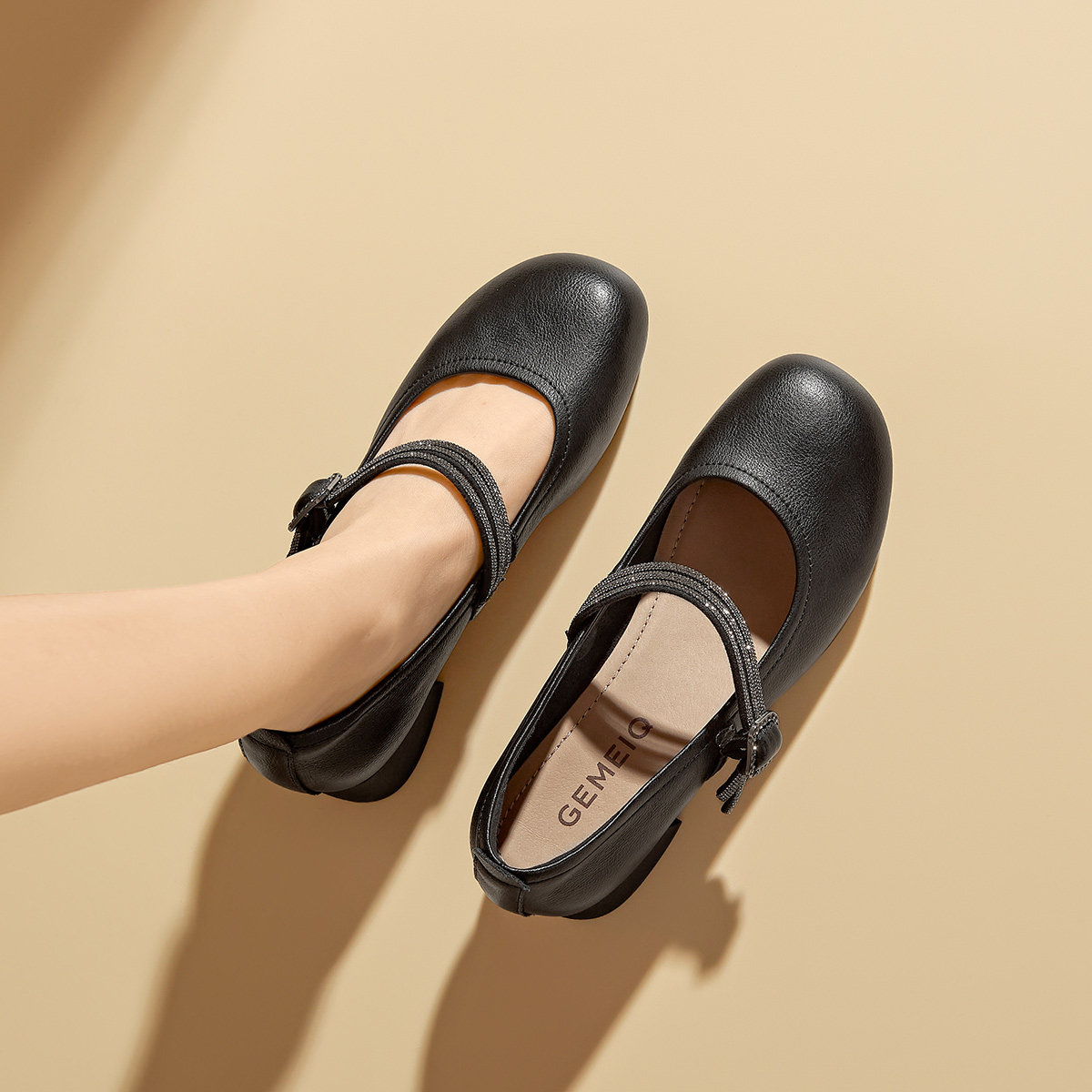 戈美其商场同款真皮一字带水钻浅口单鞋女2025新款法式玛丽珍女鞋