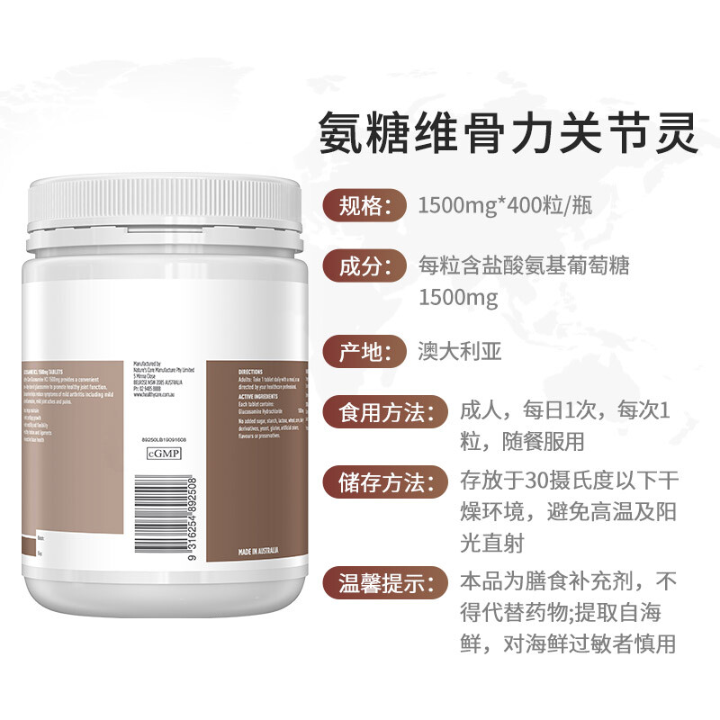 HealthyCare氨基葡萄糖氨糖维骨力养护关节中老年增加骨密度400粒
