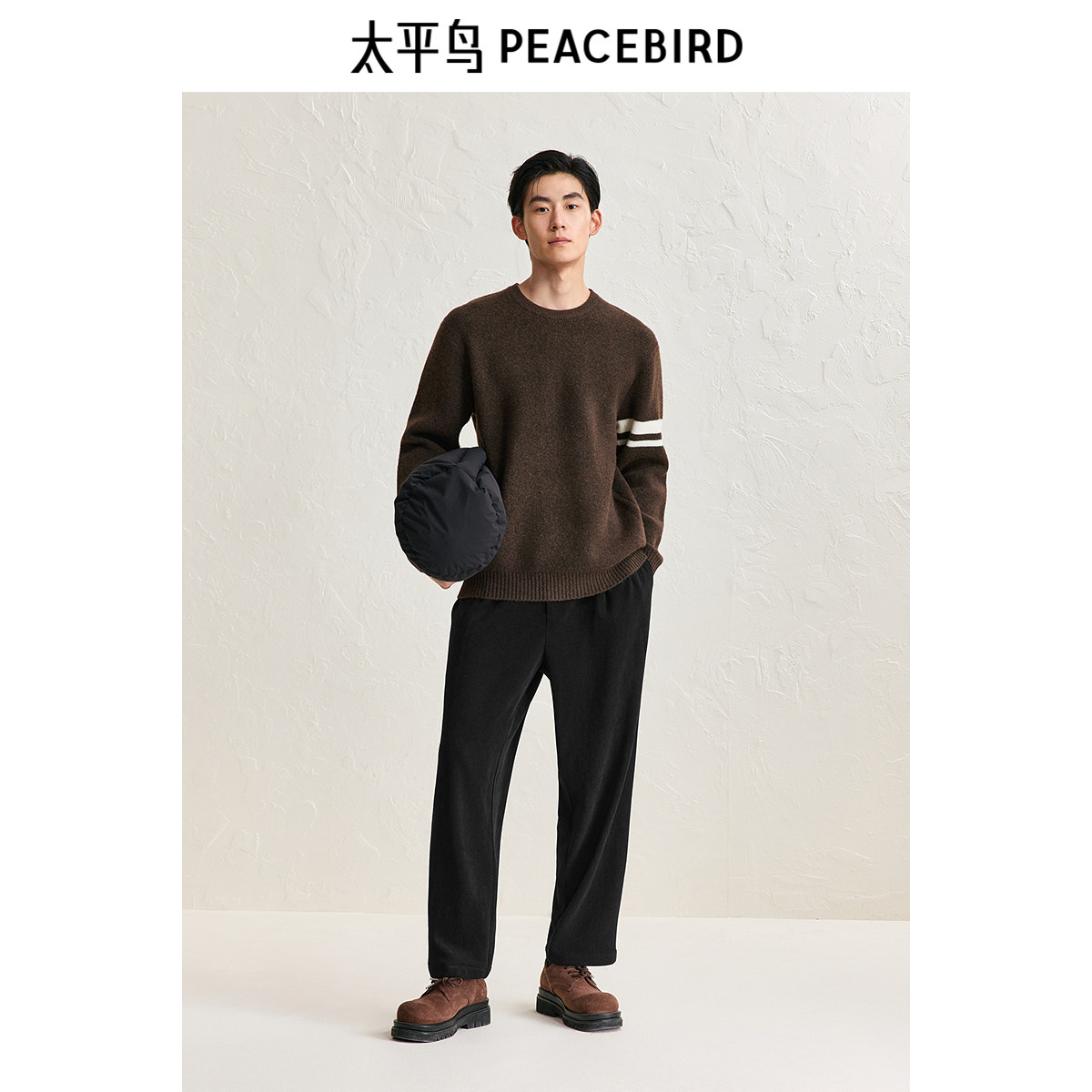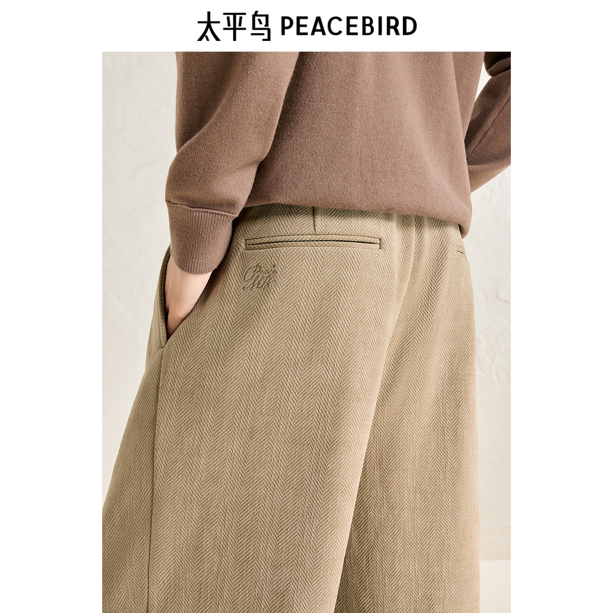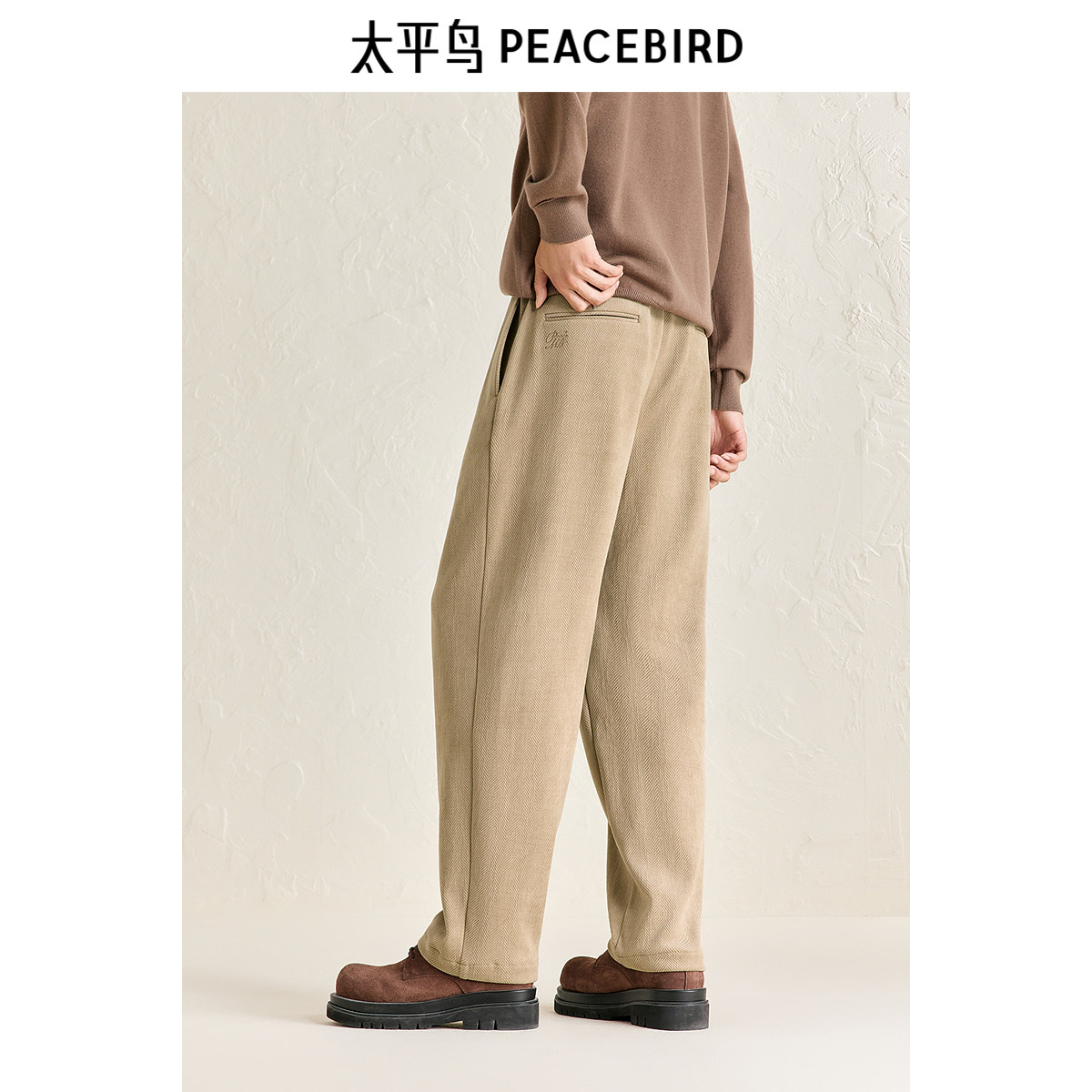 太平鸟男装休闲裤25冬季新款雪尼尔肌理阔腿西装裤直筒磨毛西裤潮