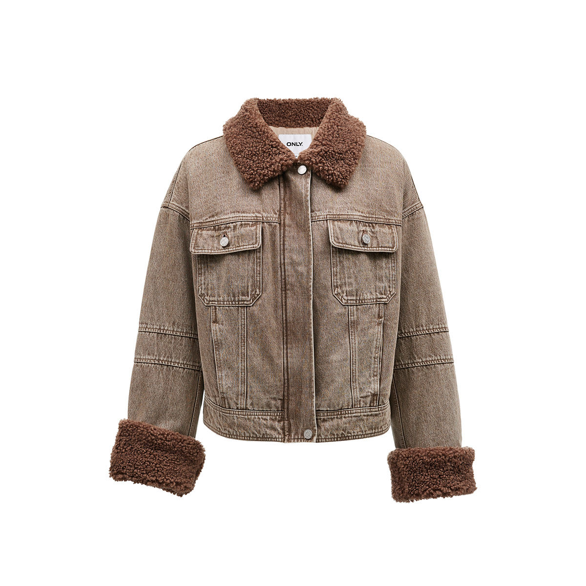 绫致ONLY秋冬新款时尚复古纯棉宽松落肩牛仔棉服外套女潮