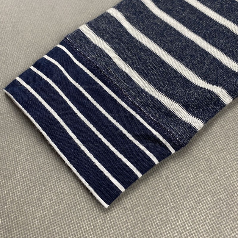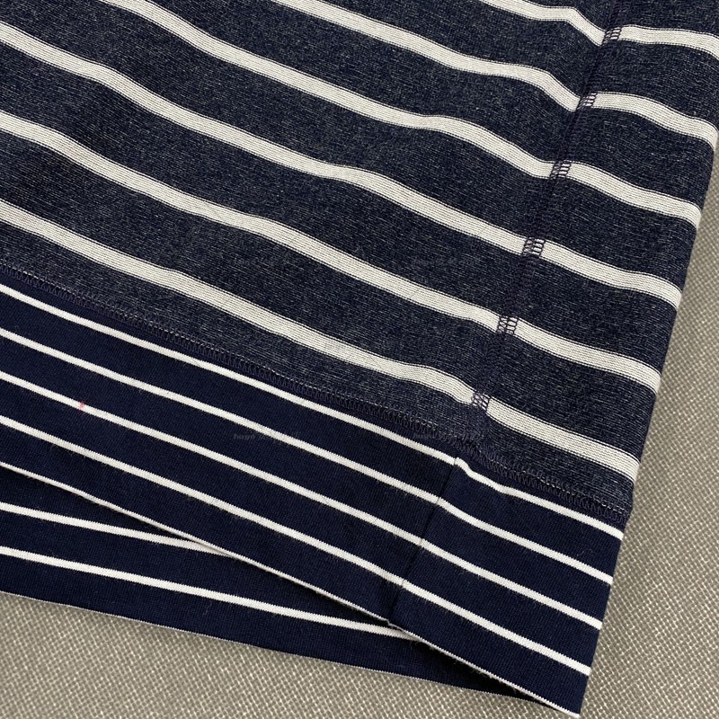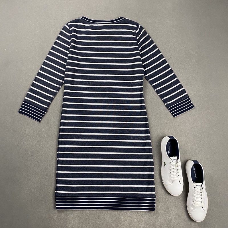 【满三免一】2534鱼 法产 T恤连衣裙 藏青条纹中裙显瘦长袖连衣裙