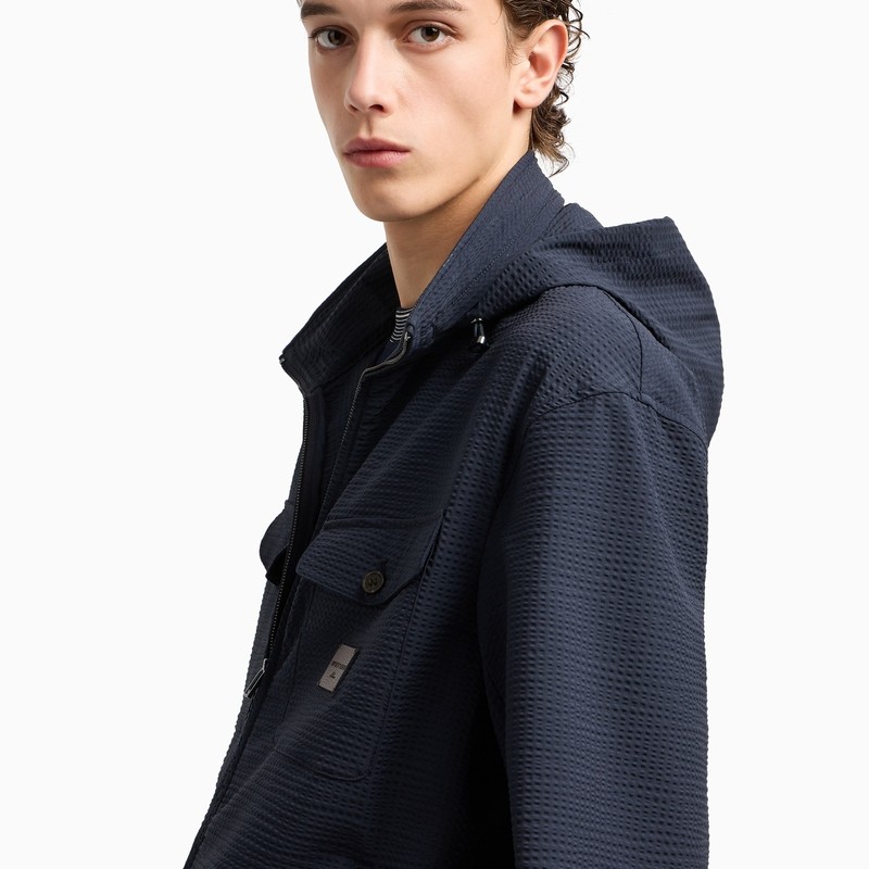 阿玛尼男士泡泡纱可收纳连帽夹克