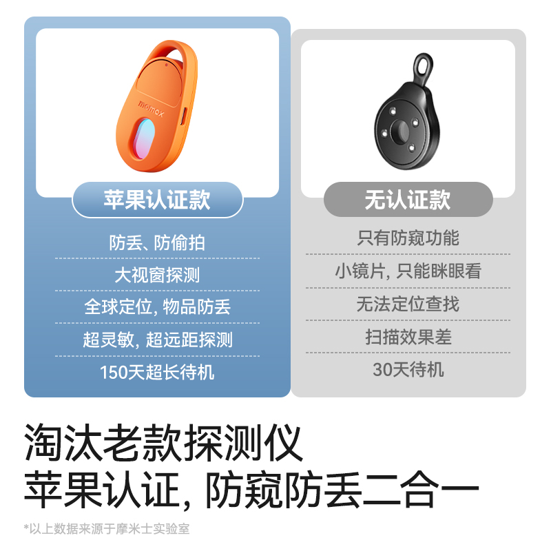 MOMAX摩米士适用于苹果精准定位器airtag平替追踪钥匙防丢器FindMy摄像头带红外线探测仪酒店防偷拍防窥神器