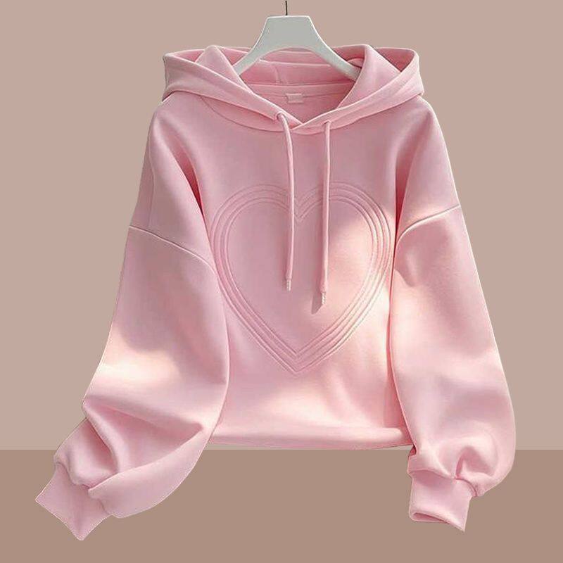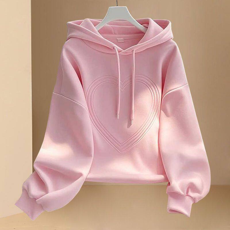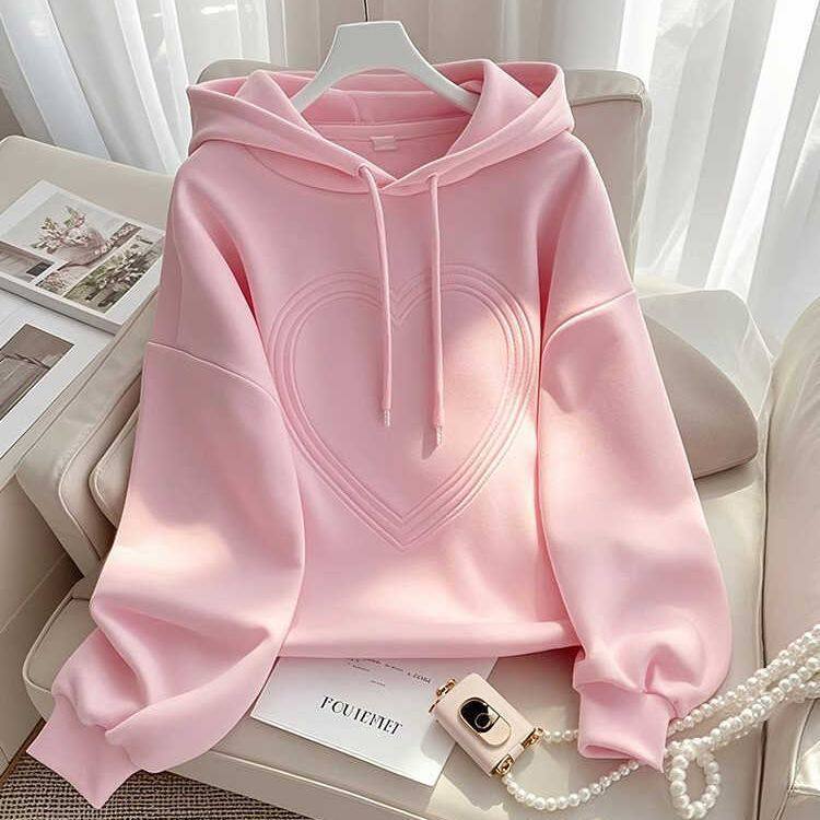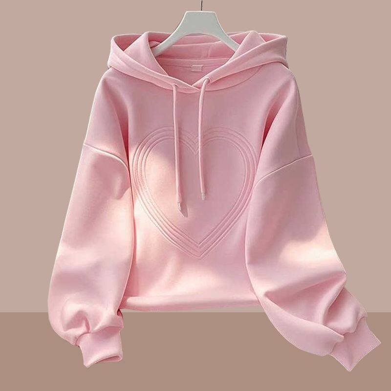 年春季新款连帽长袖卫衣女士大码时尚休闲爱心设计感洋气上衣