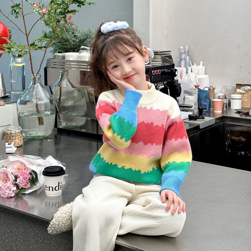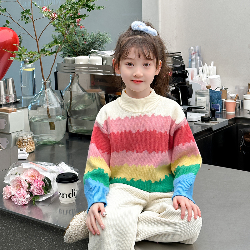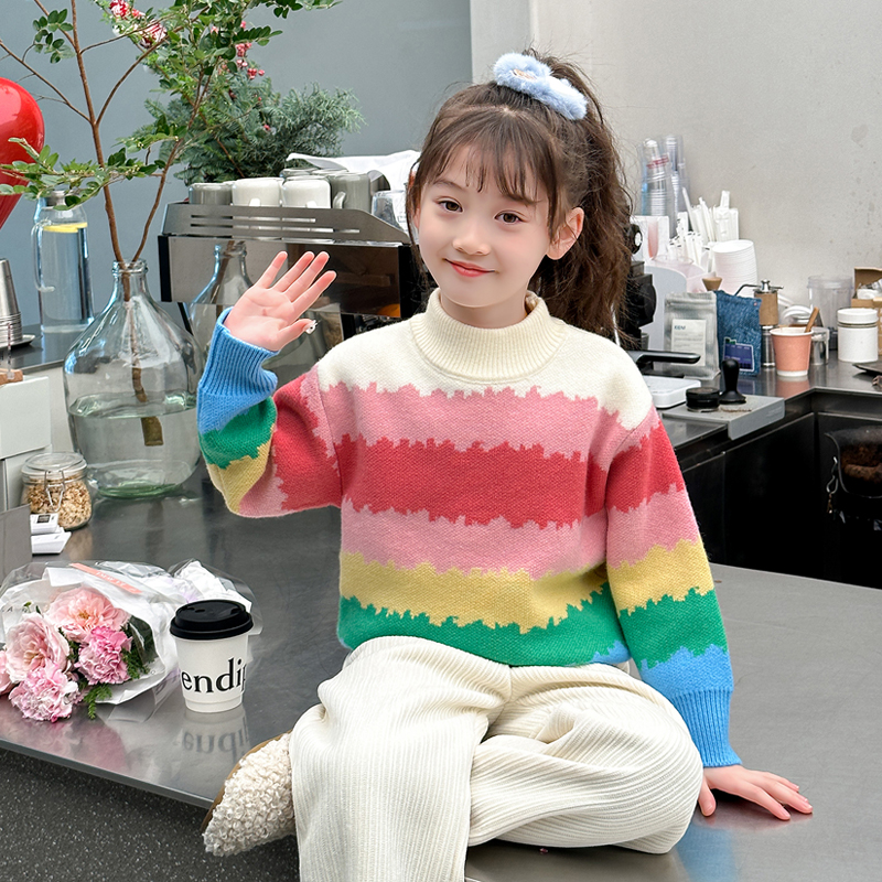 女童毛衣秋冬款2025新款洋气大童加绒加厚冬季套头女孩针织打底衫