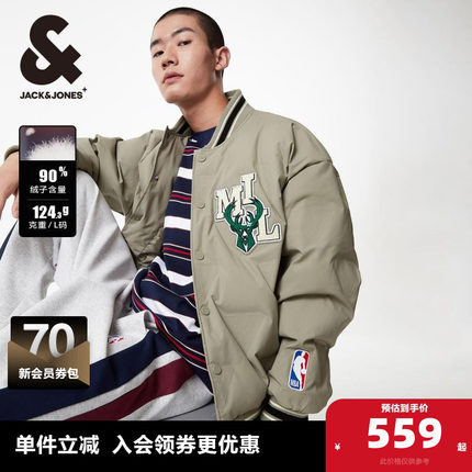 杰克琼斯春季新NBA联名时尚潮流帅气字母棒球领羽绒服外套男装