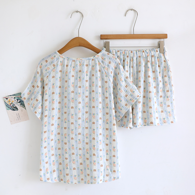 纯棉纱布卡通小熊女士家居服