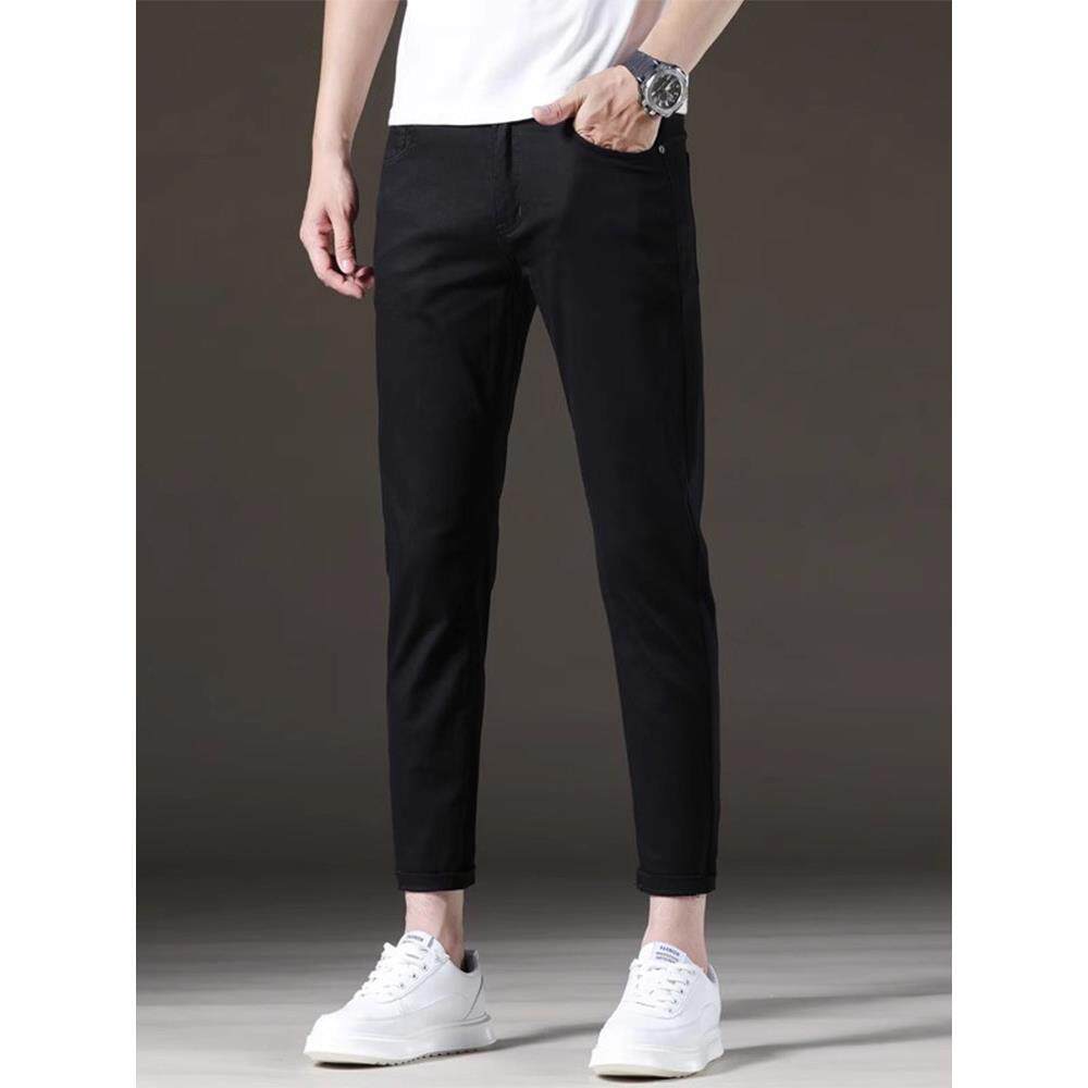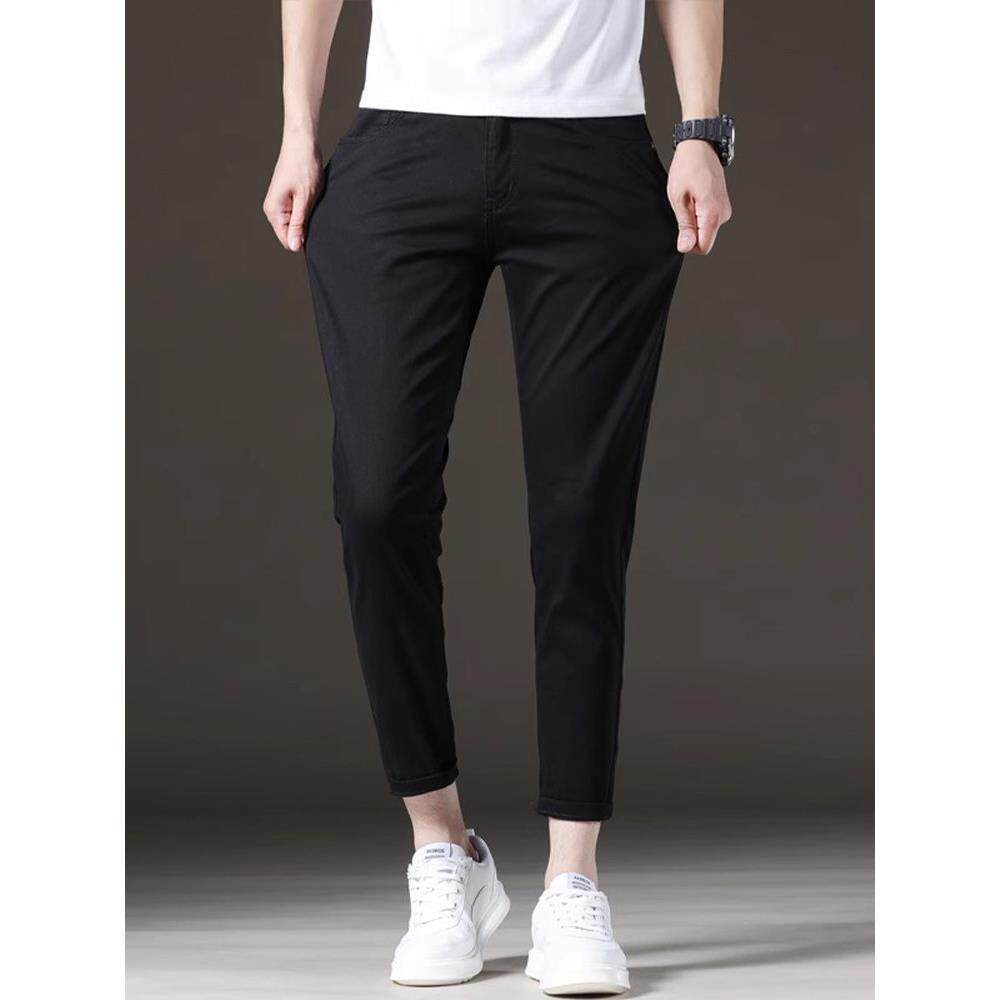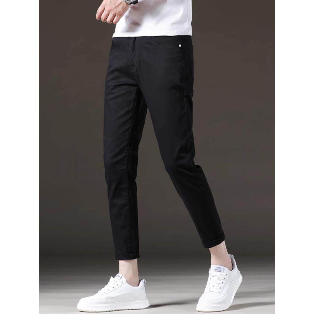 LEEKODY秋季黑色九分牛仔裤男士修身小脚潮牌韩版弹力百搭9分裤子