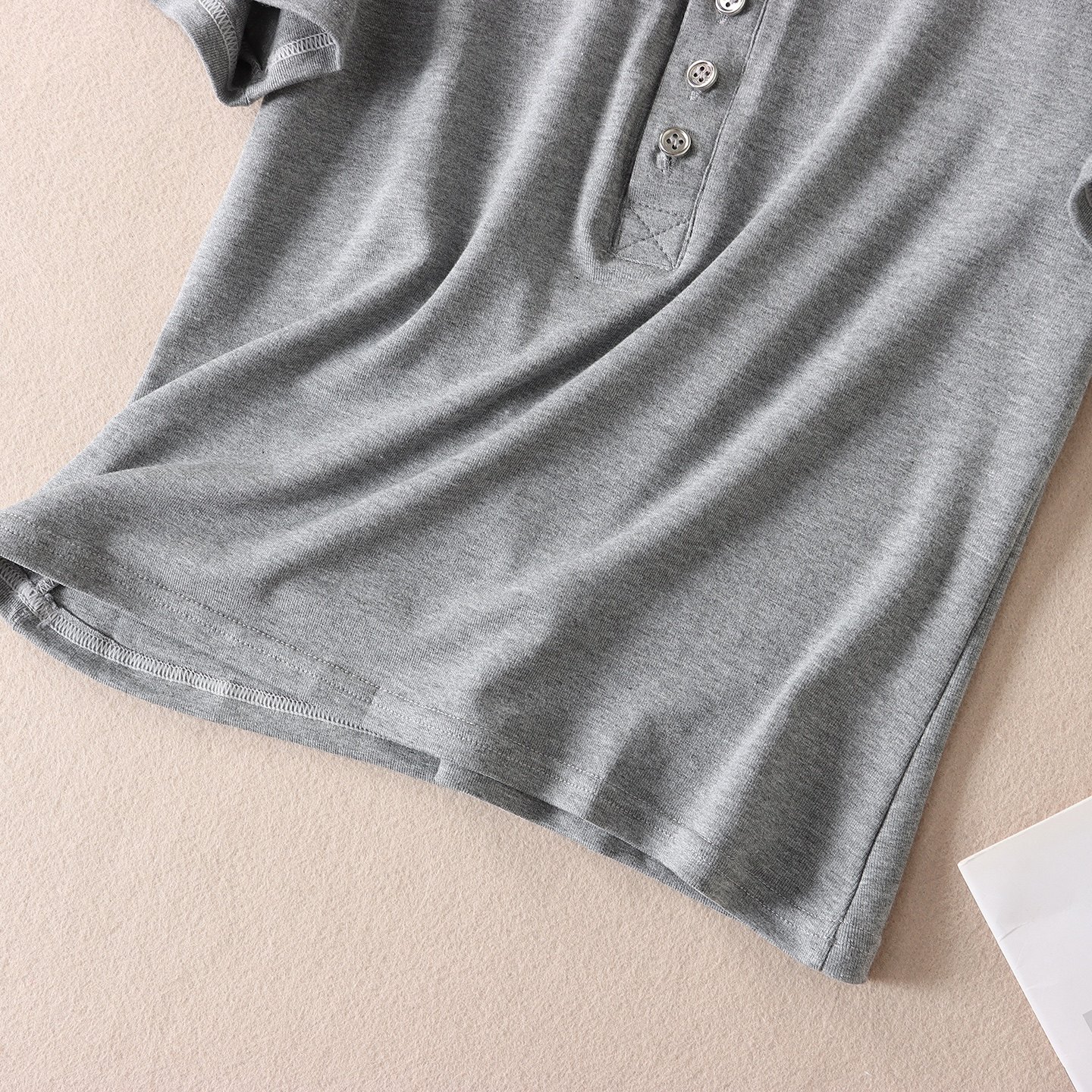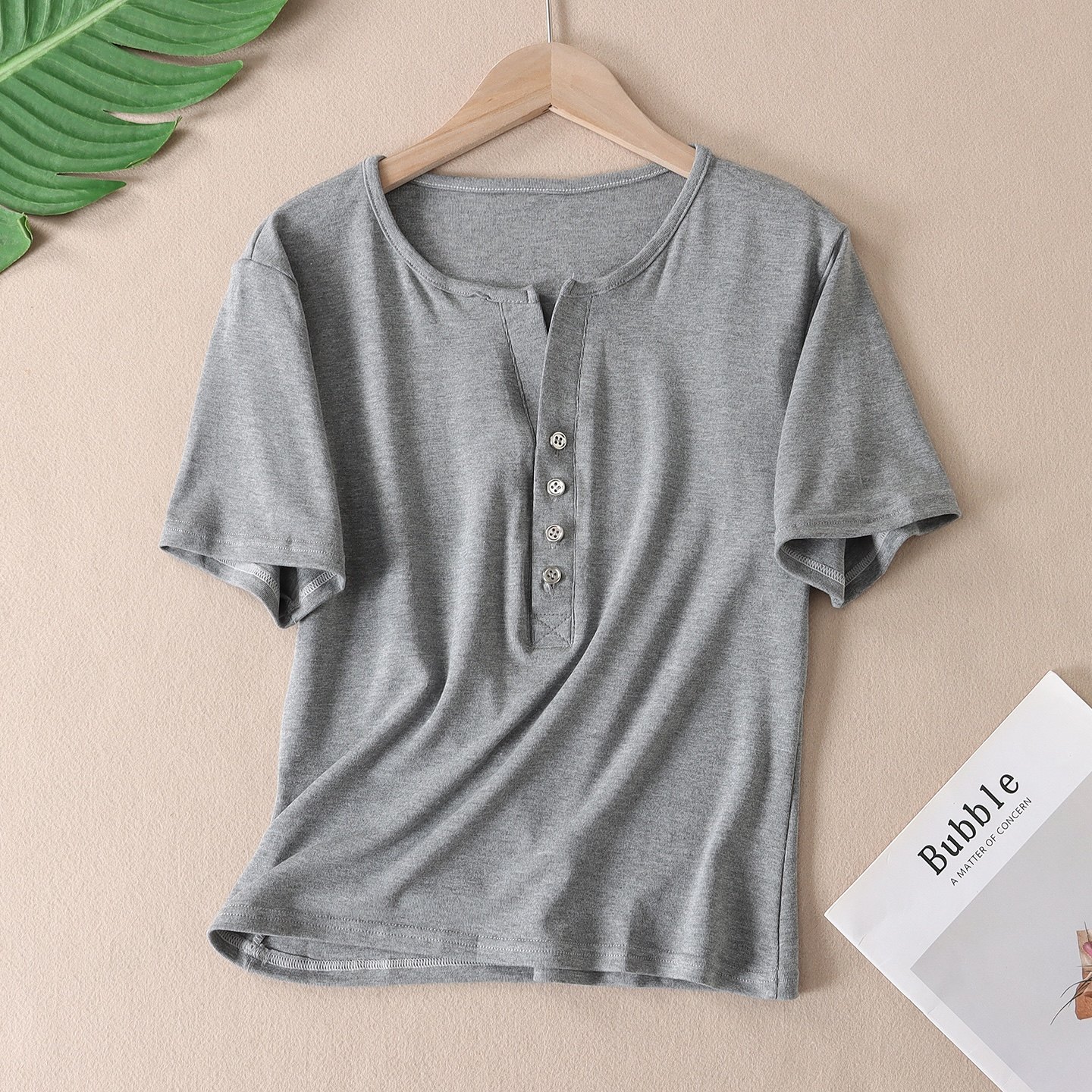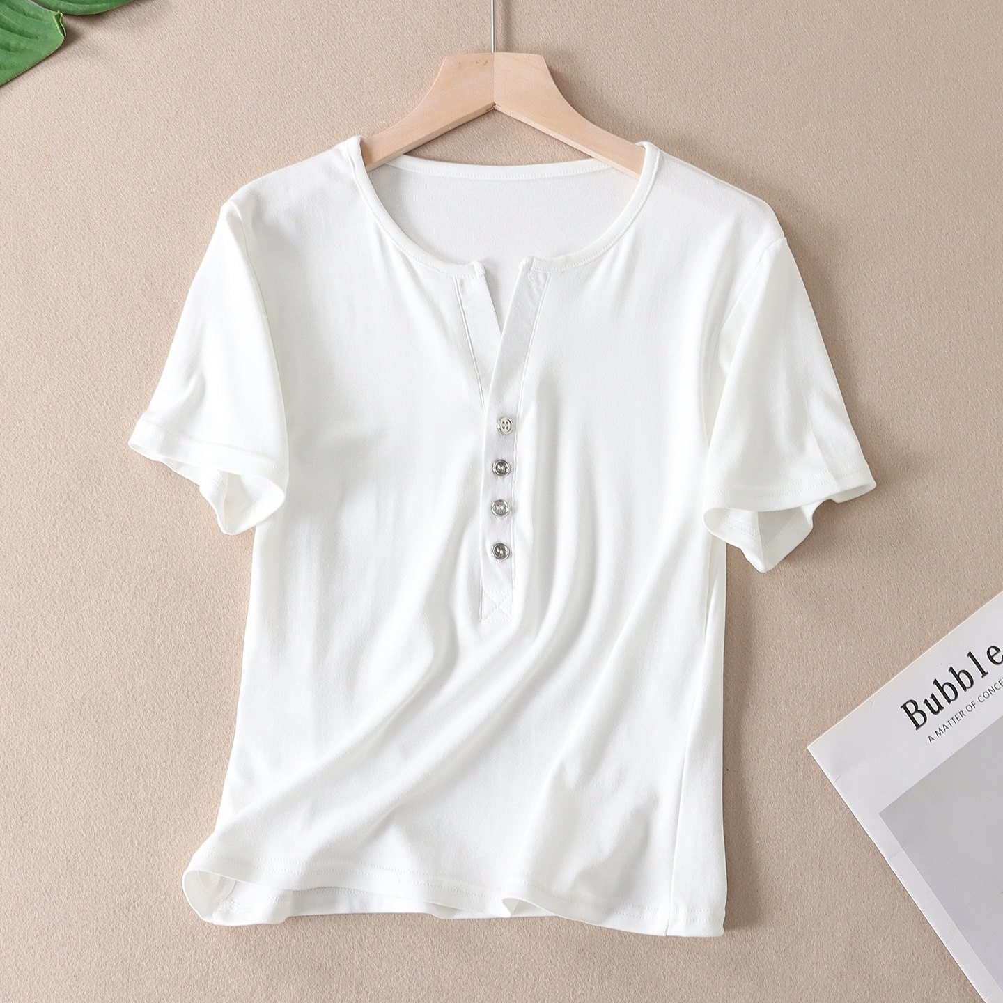韩版气质时髦亨利V领正肩短袖T恤