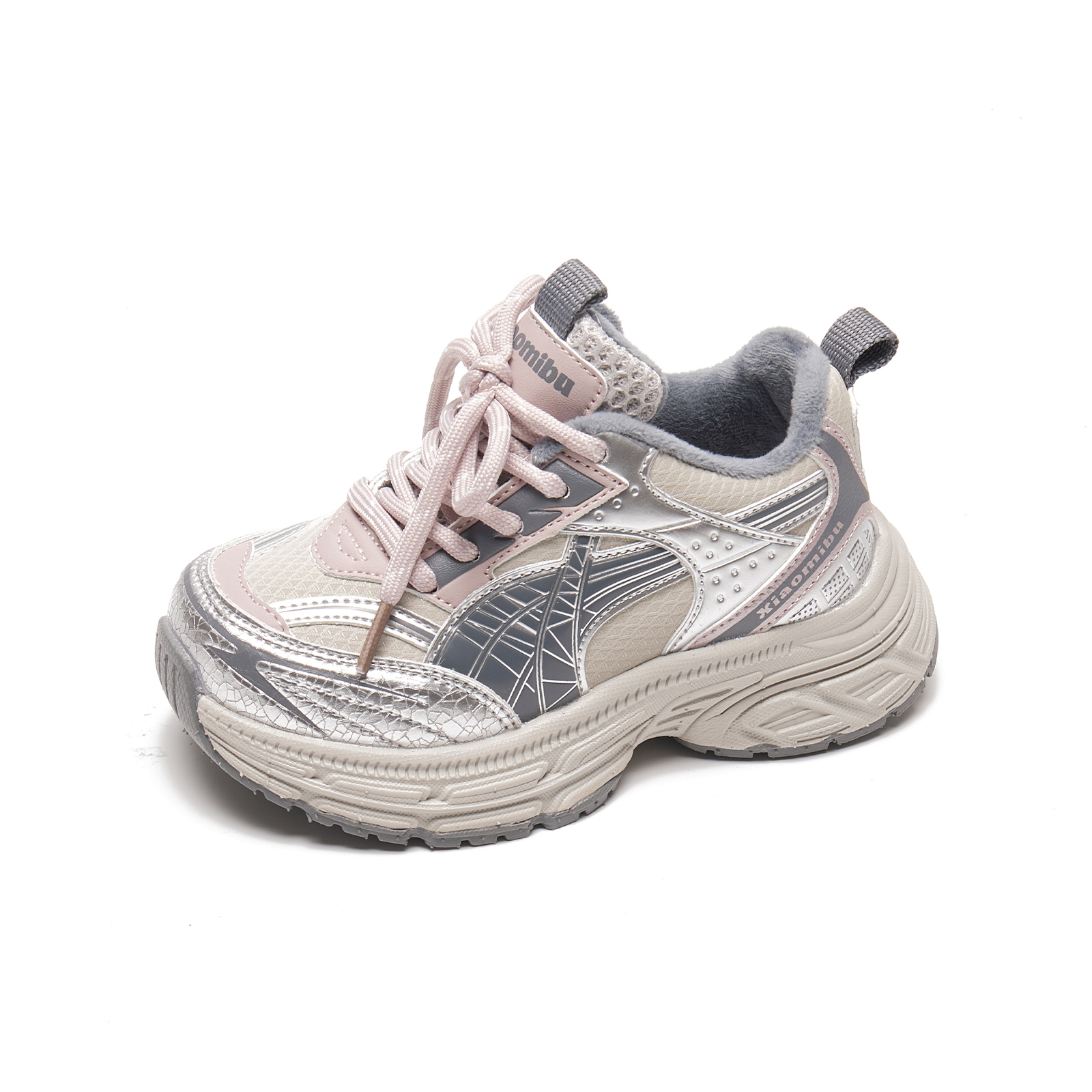 小米步女童运动鞋2025冬季新款加绒老爹鞋儿童跑步鞋男童二棉鞋子