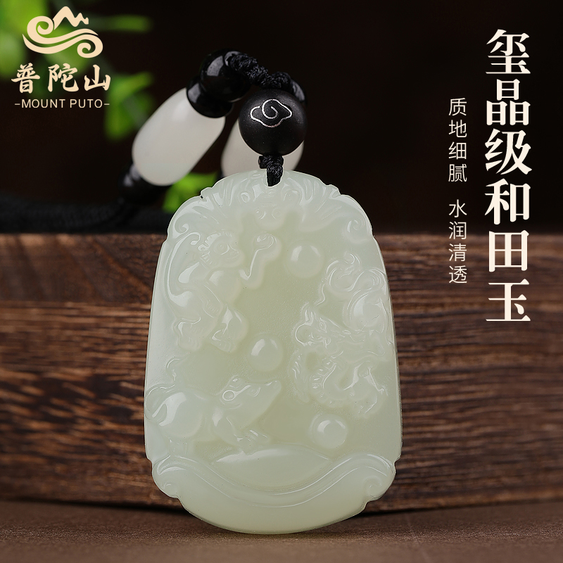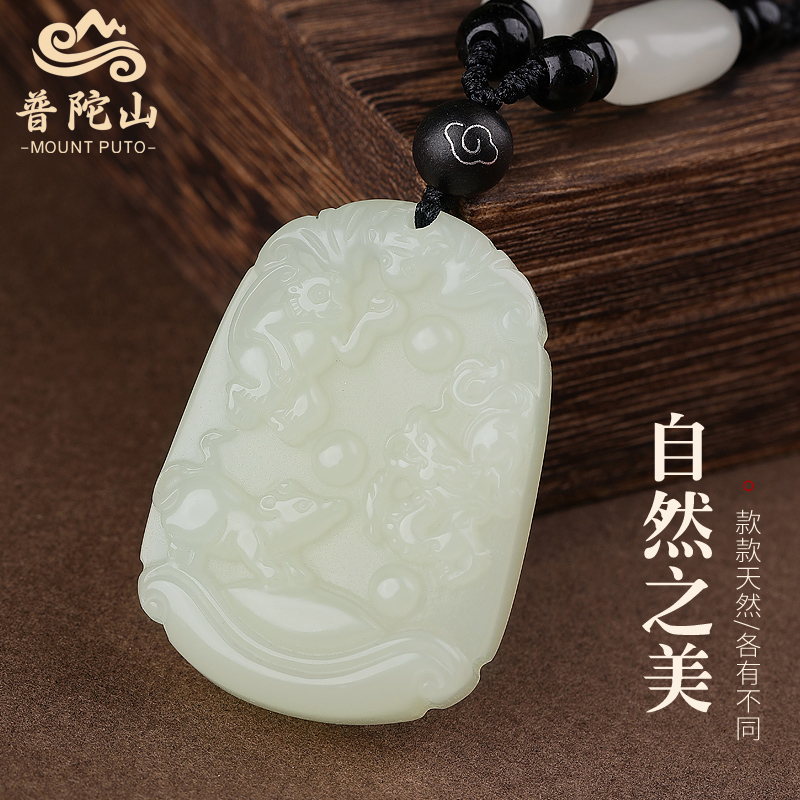 天然和田玉吊坠男女玉石生肖三合挂件护身符玉佩申子辰三合牌项链